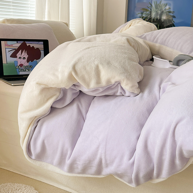 商品名称:昔可家纺 2023新款奶油纯色系列双拼牛奶绒四件套 芋泥波波