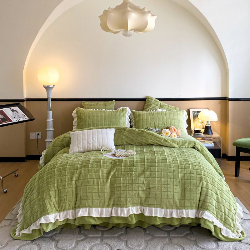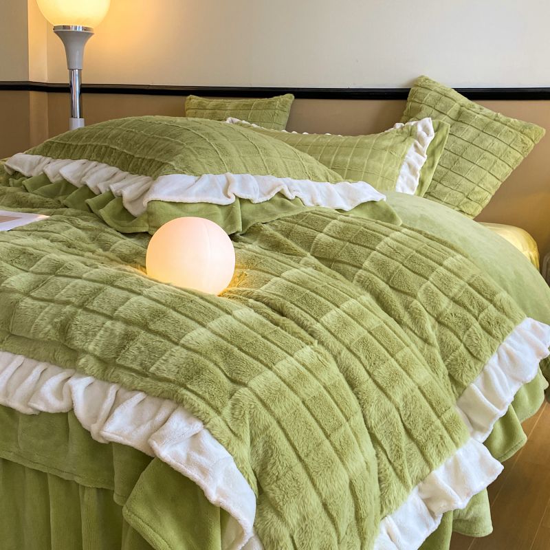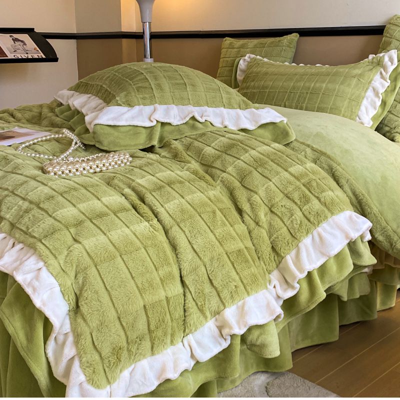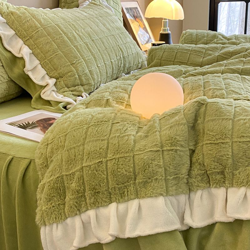当前位置: 91家纺网 > 商品网购 > 床品套件 > 四件套 > 兔毛绒四件套 > 金麦家纺 2023新款皮草级兔兔绒四件套 黛美娜-灰草绿