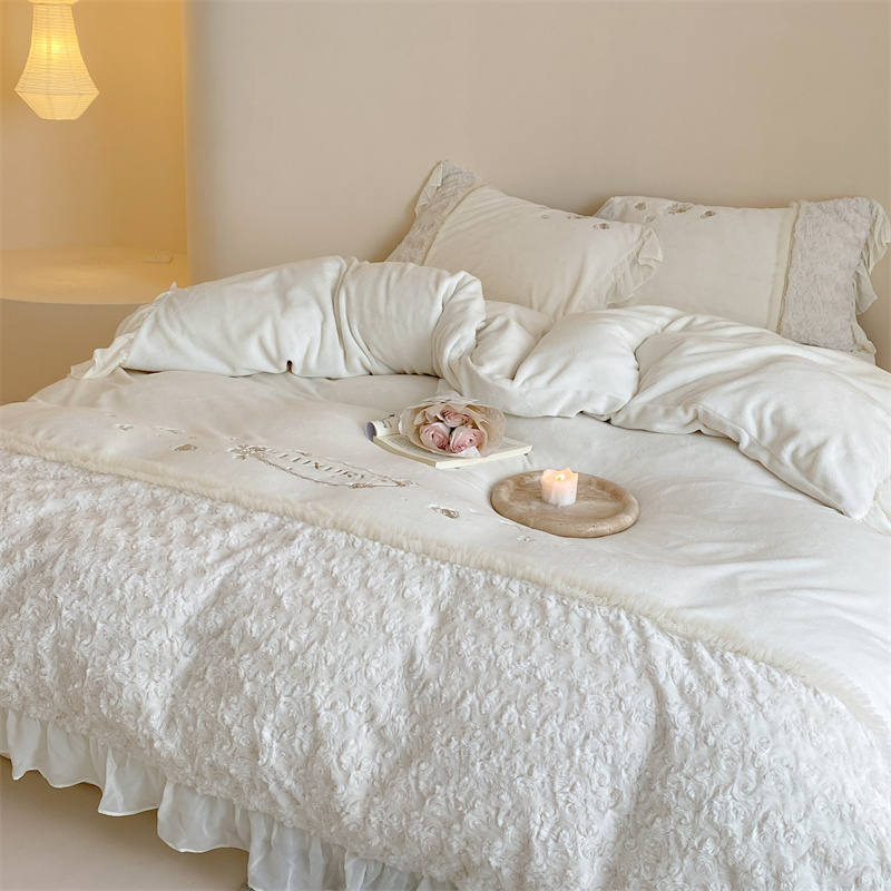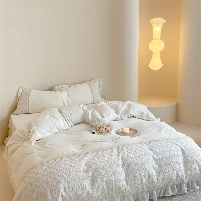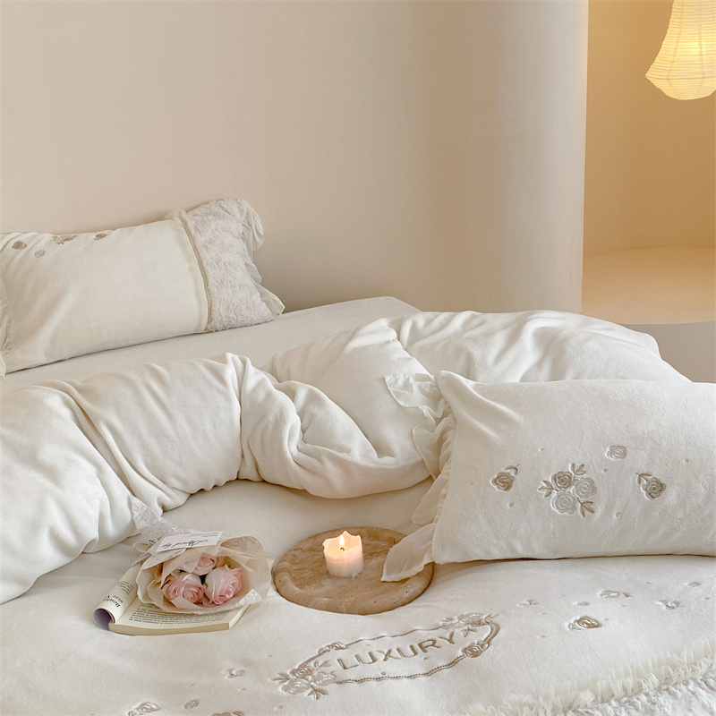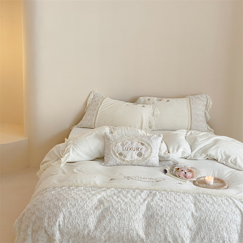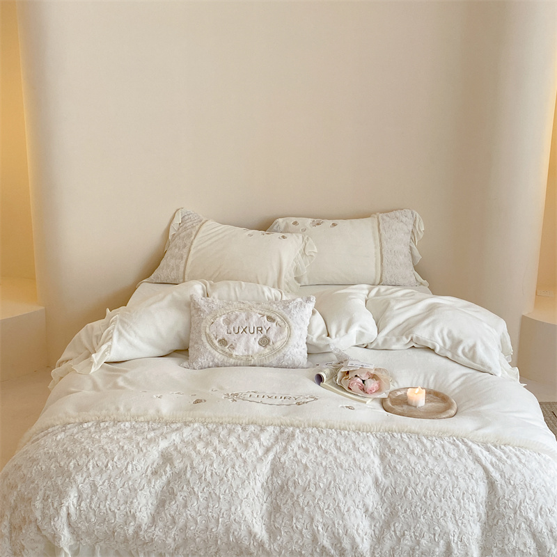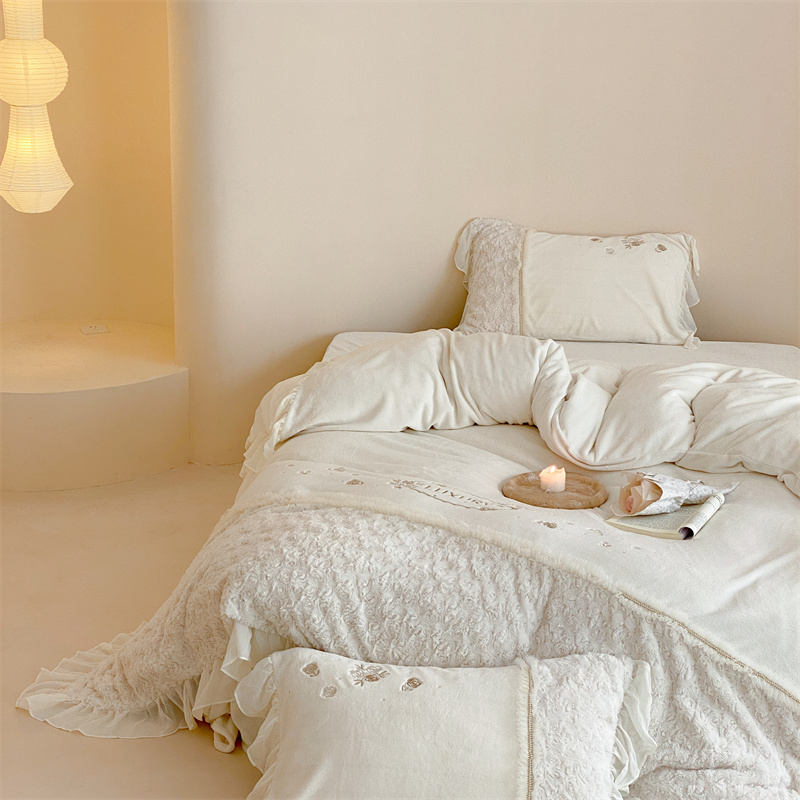 馨蕊家居 2023新款300克极细腻超柔煦暖绒四件套-绒夏梦 元气白桃