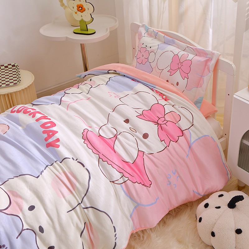 八零年代 2023新款大版卡通牛奶绒幼儿园三件套宝宝绒保暖套件 宝宝绒-花园兔