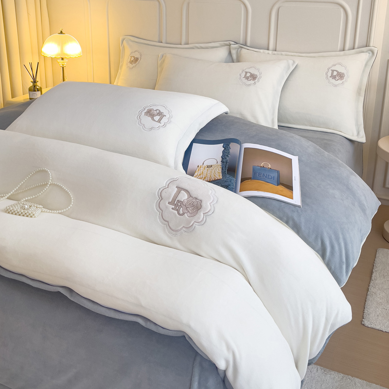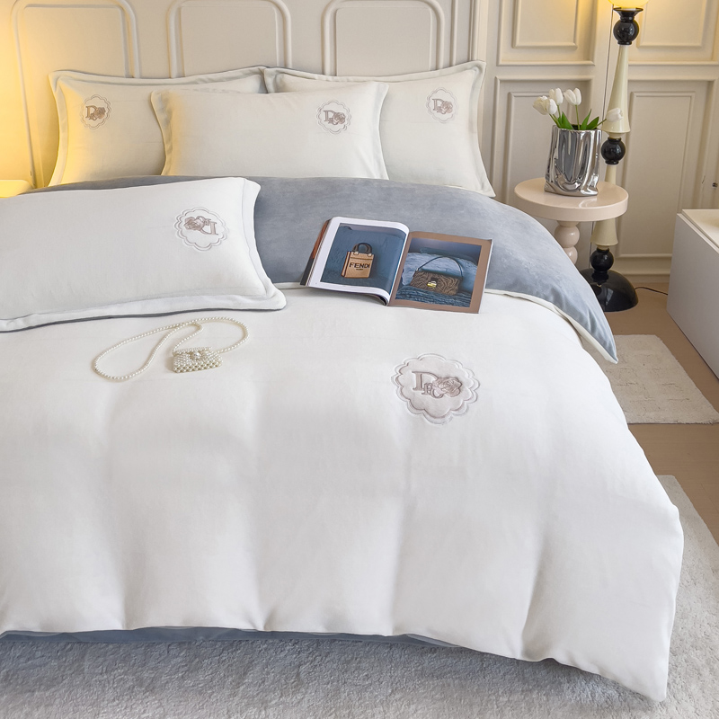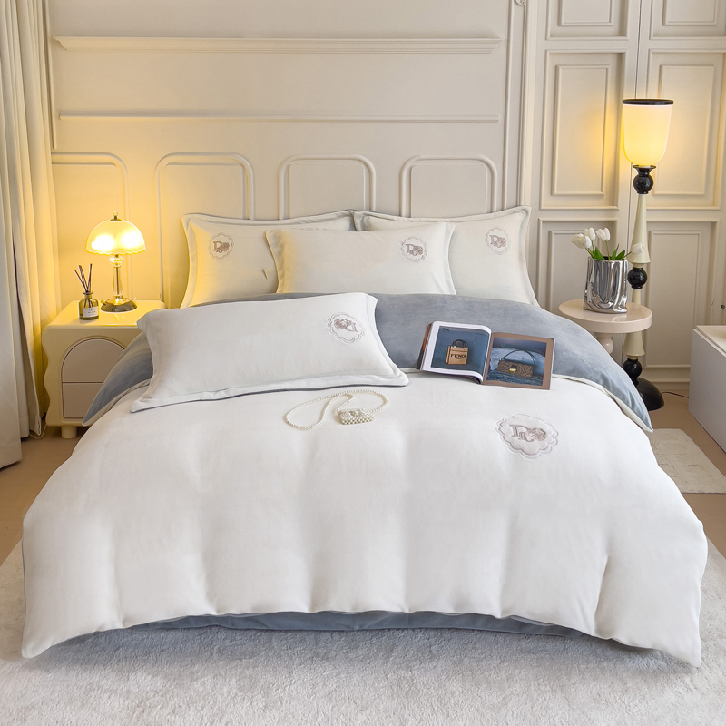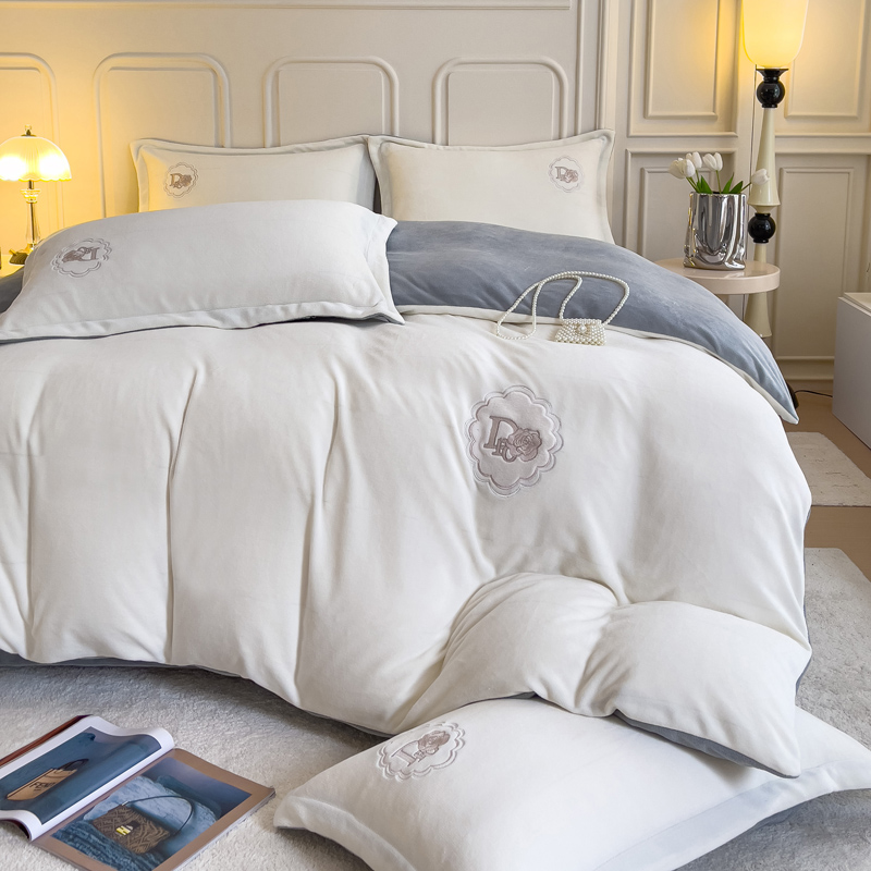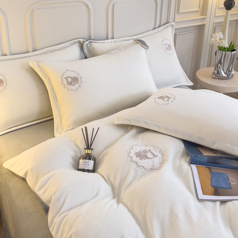 牛奶绒双拼小香风刺绣贴布绣四件套-戴安娜(含买家秀)戴安娜-月光白