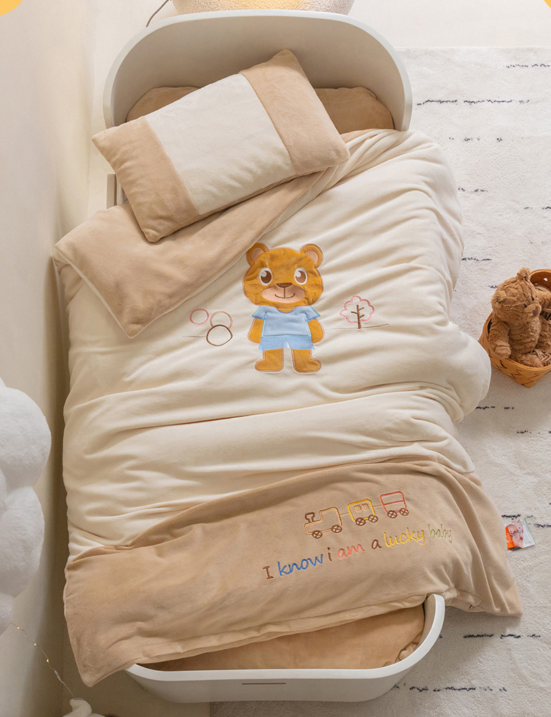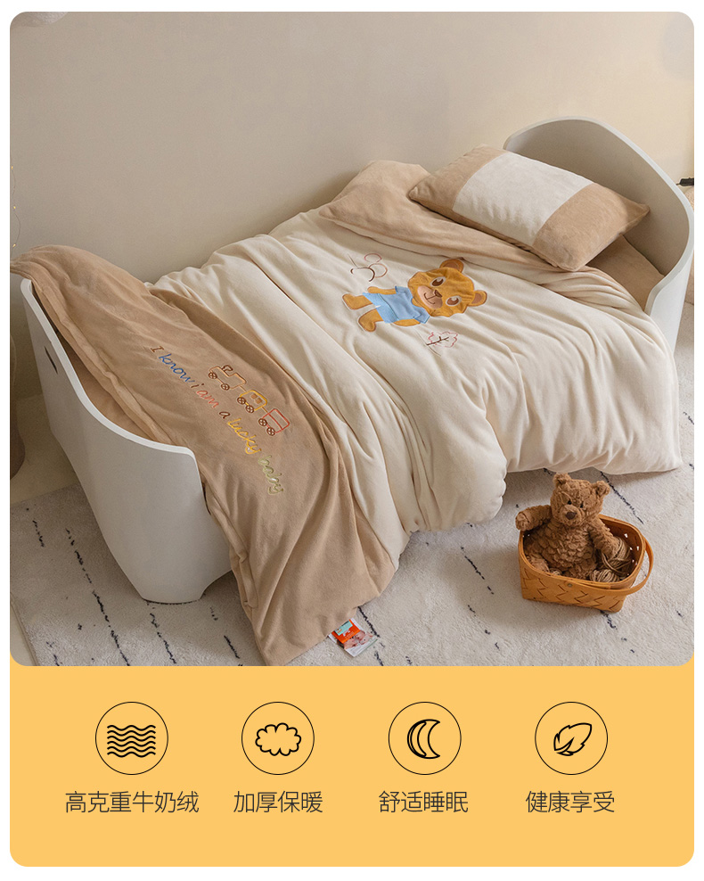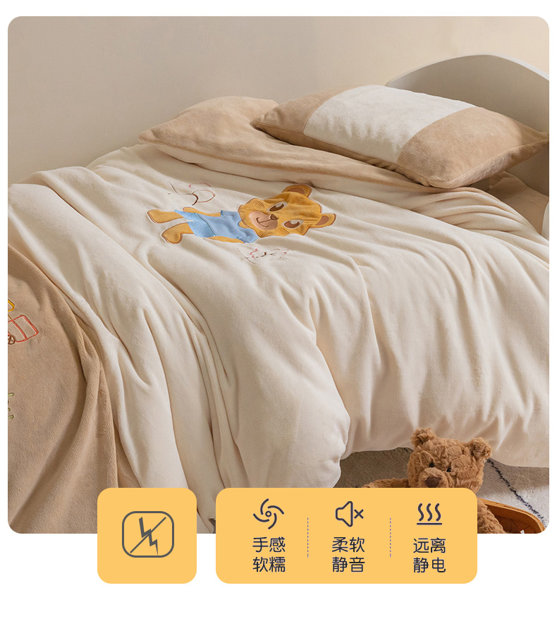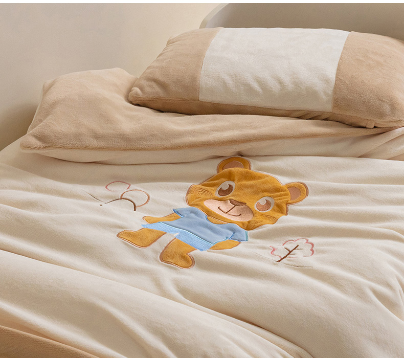 • 91家纺网 家纺一手货源 找家纺 喜多兔儿童家纺 2023喜多兔牛奶绒活套被 小伙伴系列—米色哆咪小熊