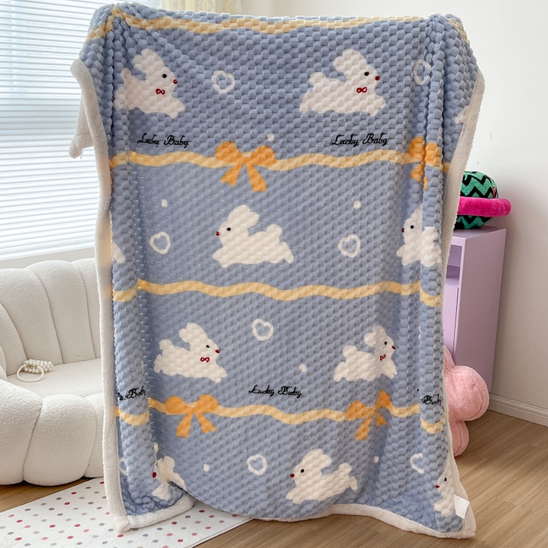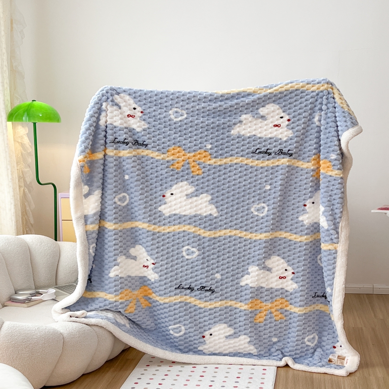 商品名称:顾里家纺 2023新款ins韩风∙豆豆绒奶油色羊羔毯 丝带小兔