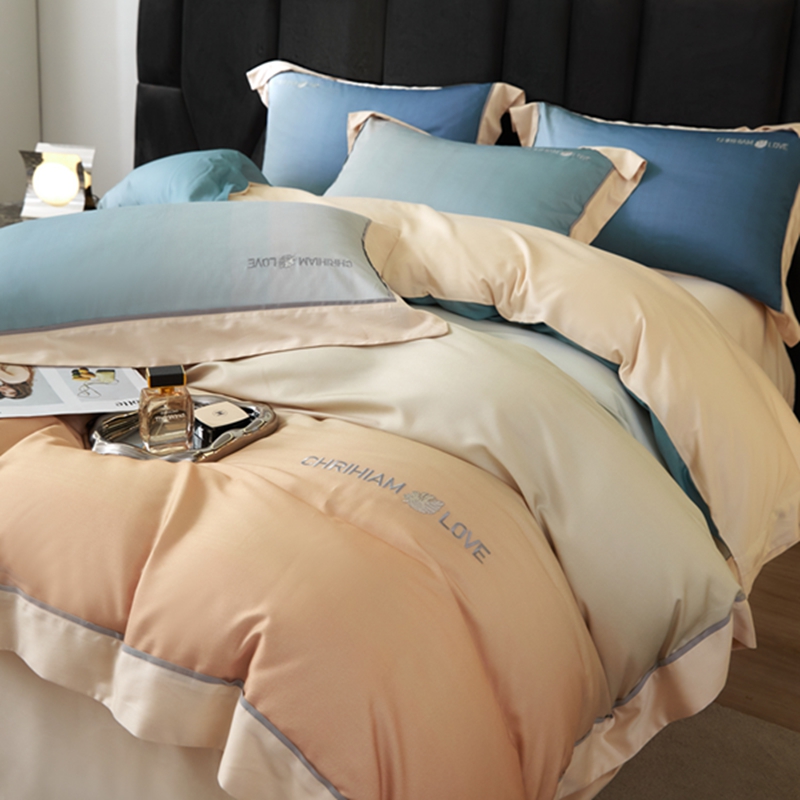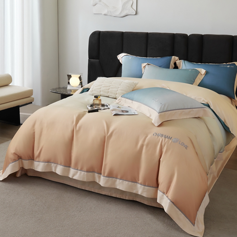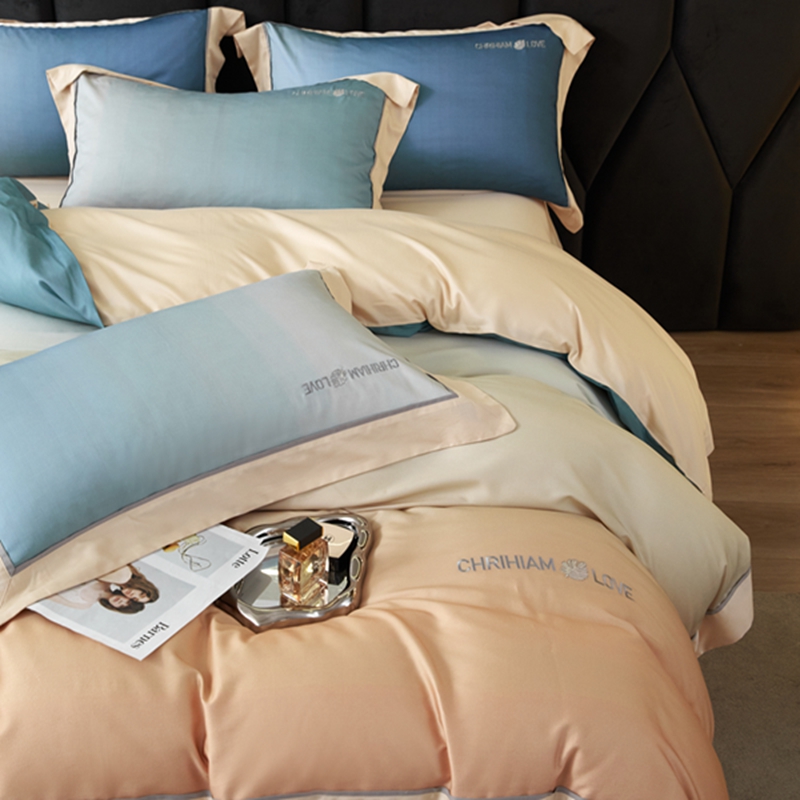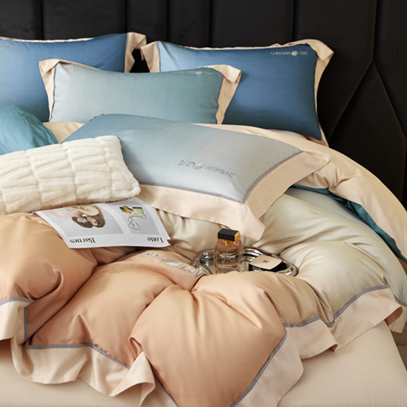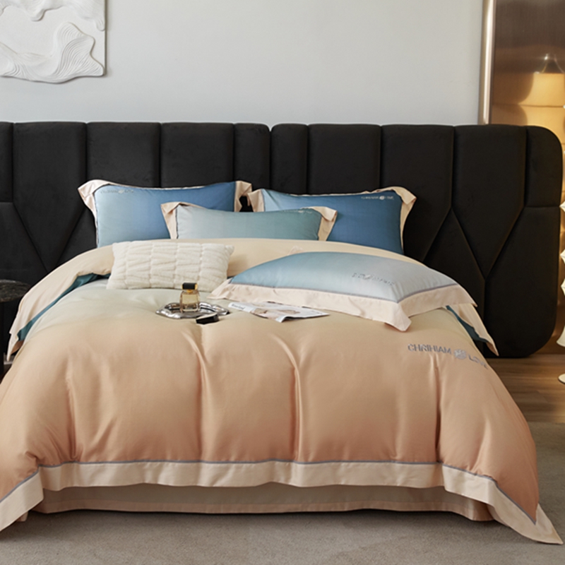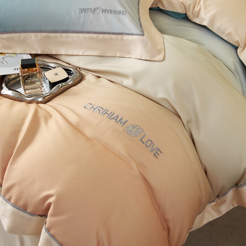 (总)时亿 2023新款100支长绒棉四件套苍兰之约,苍兰之约-橙,苍兰之约-绿