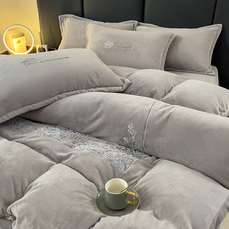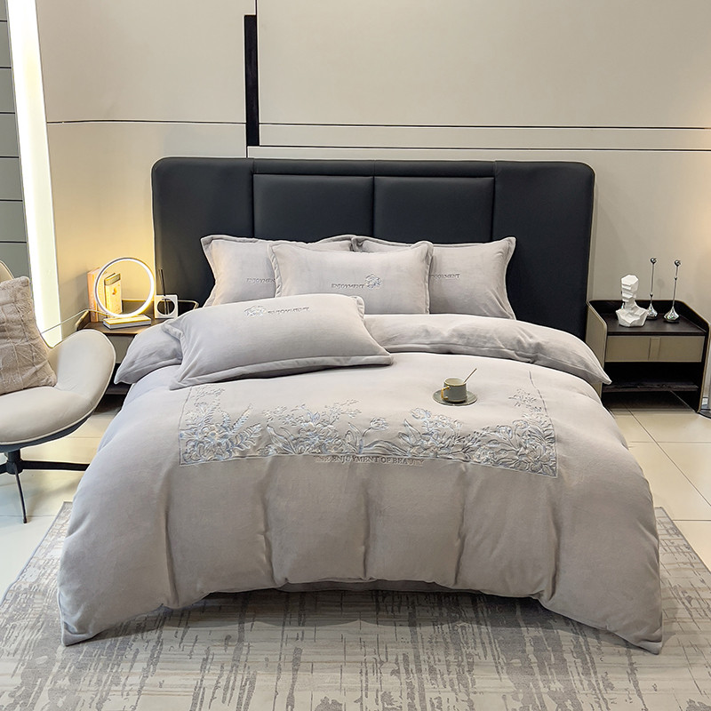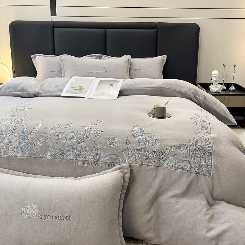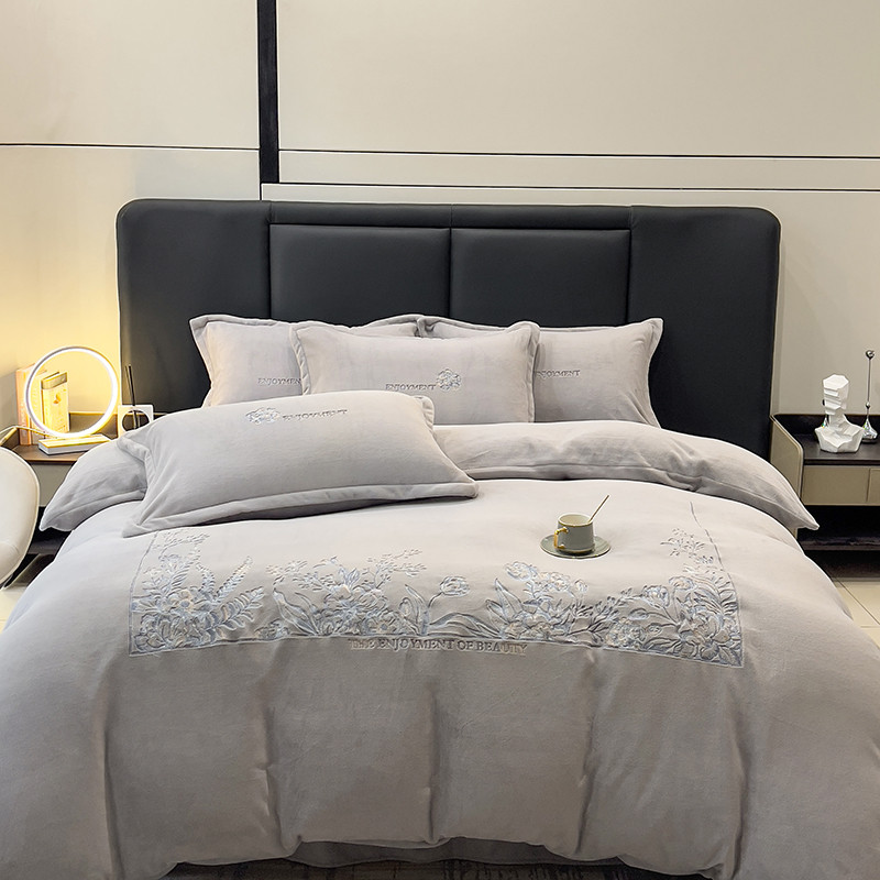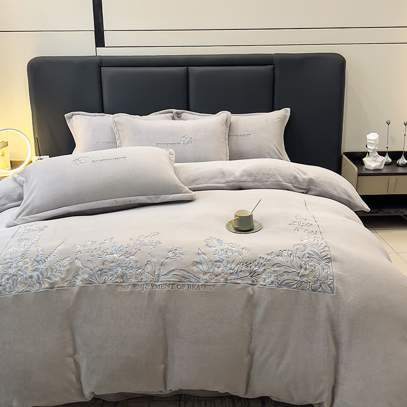 商品名称:昊川家纺 2025新款230g全消光绣花四件套-盛世 盛世-灰