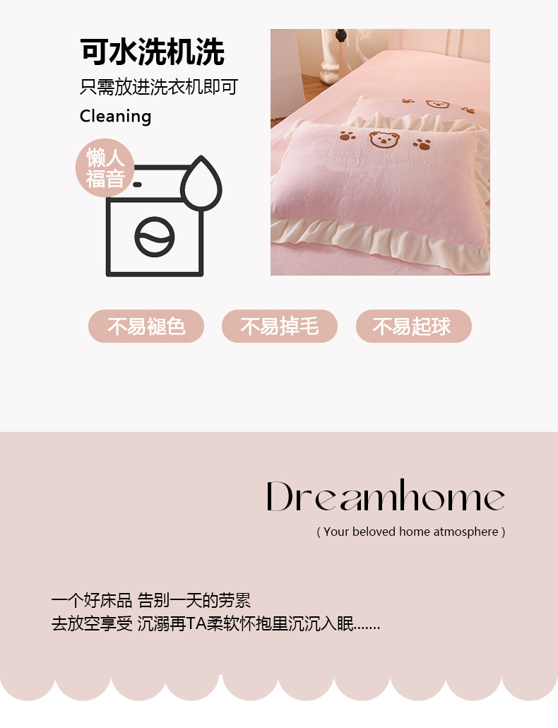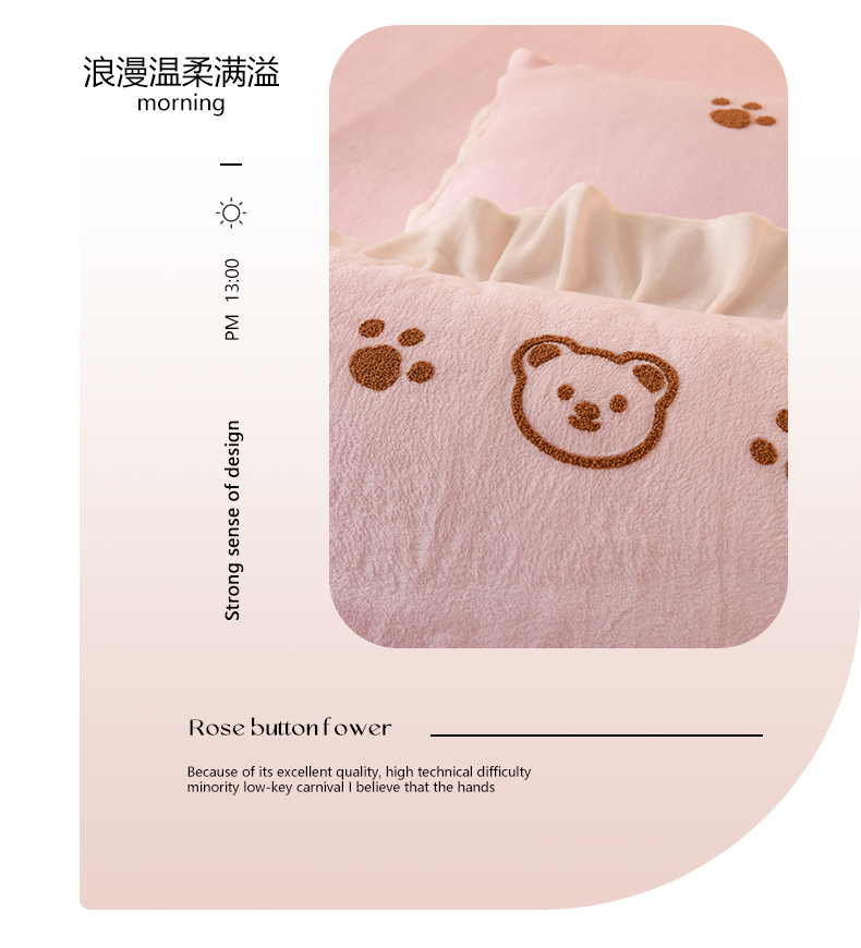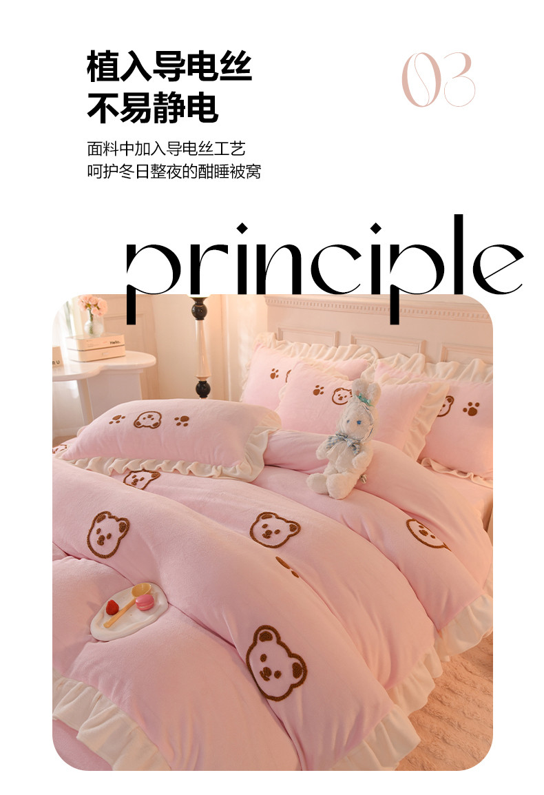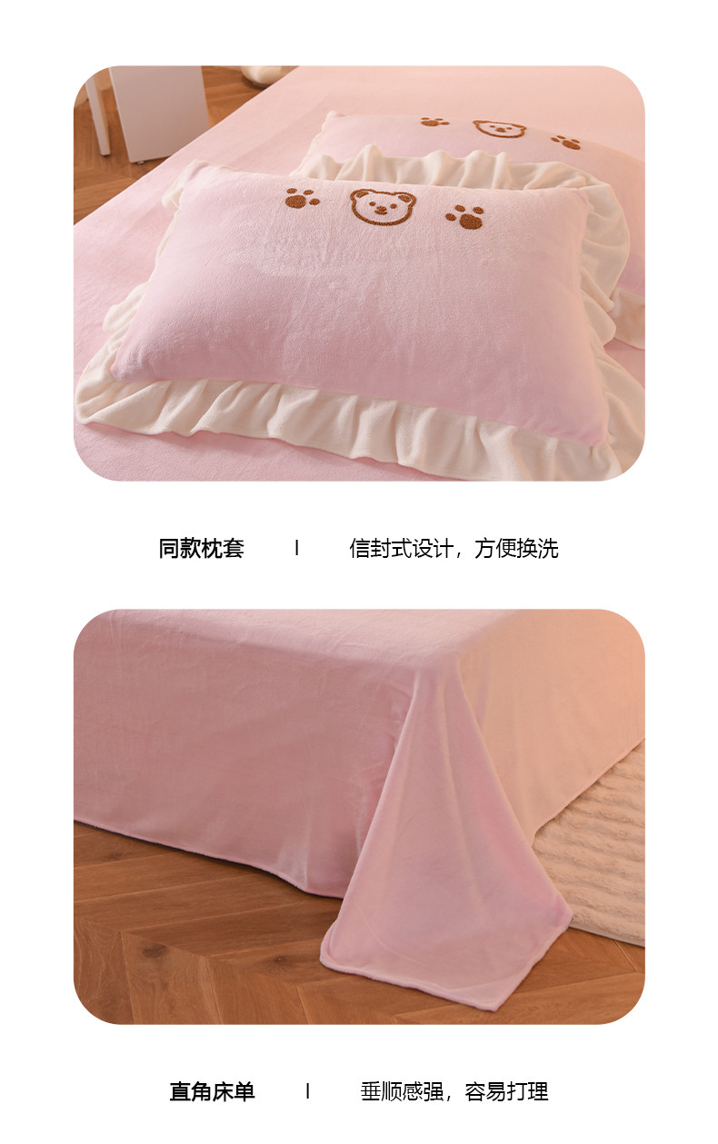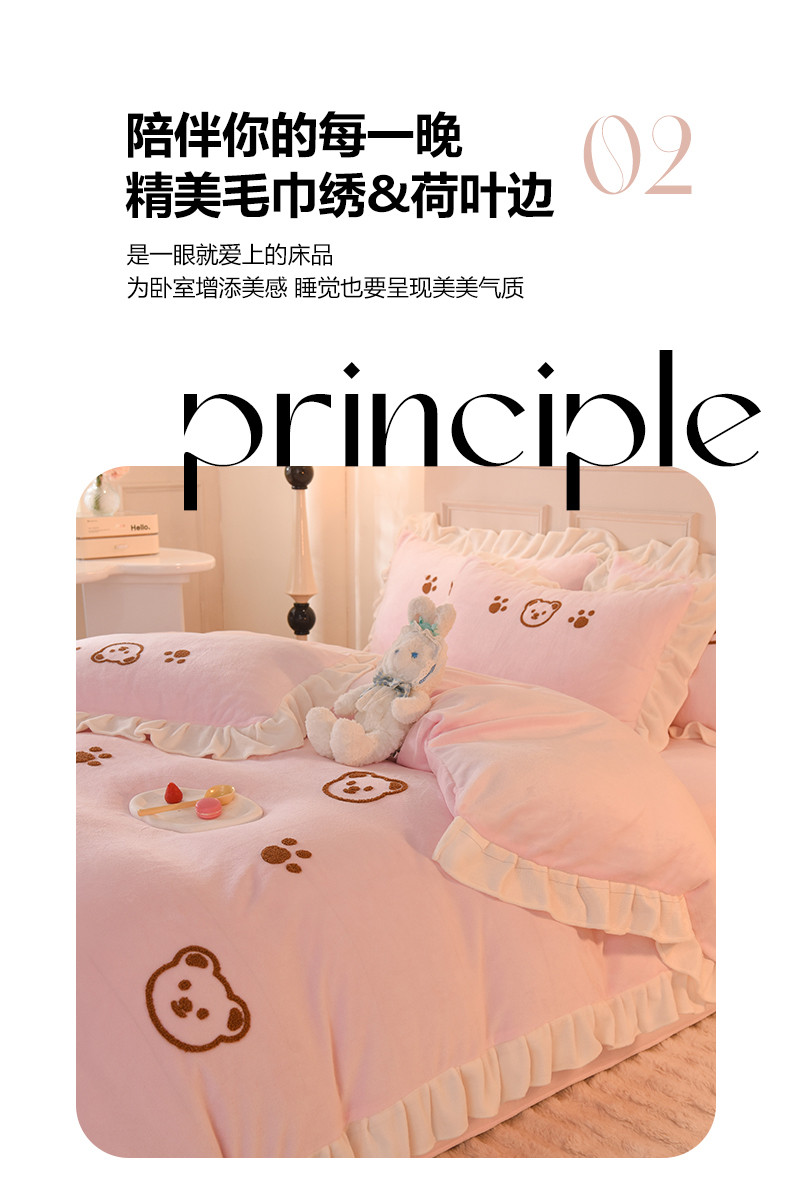 商品名称:菲儿家纺 2023新款牛奶绒毛巾绣四件套 哇塞小熊-浅粉