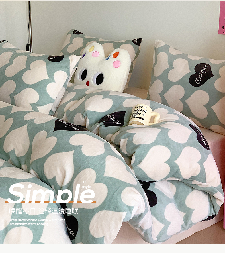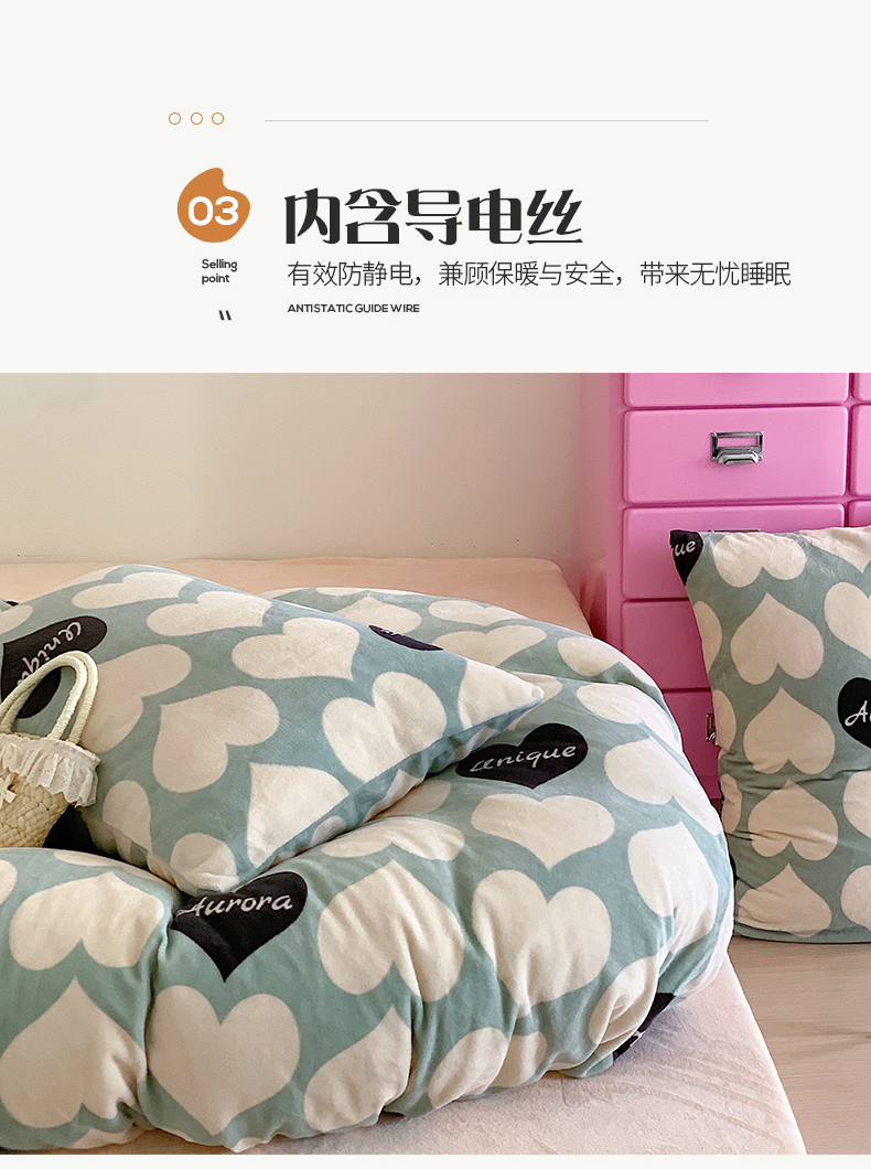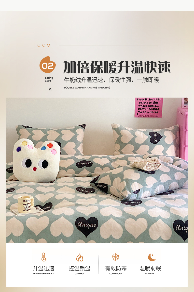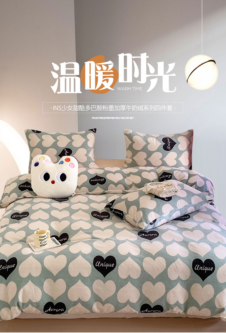桃子家居 2023新款ins少女甜酷多巴胺粉墨加厚牛奶绒系列四件套 绒-抹茶心语