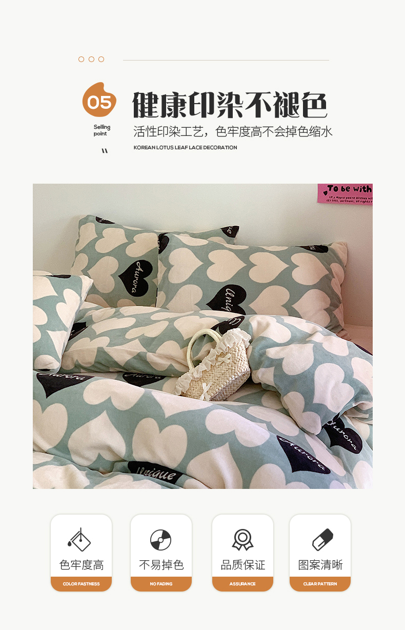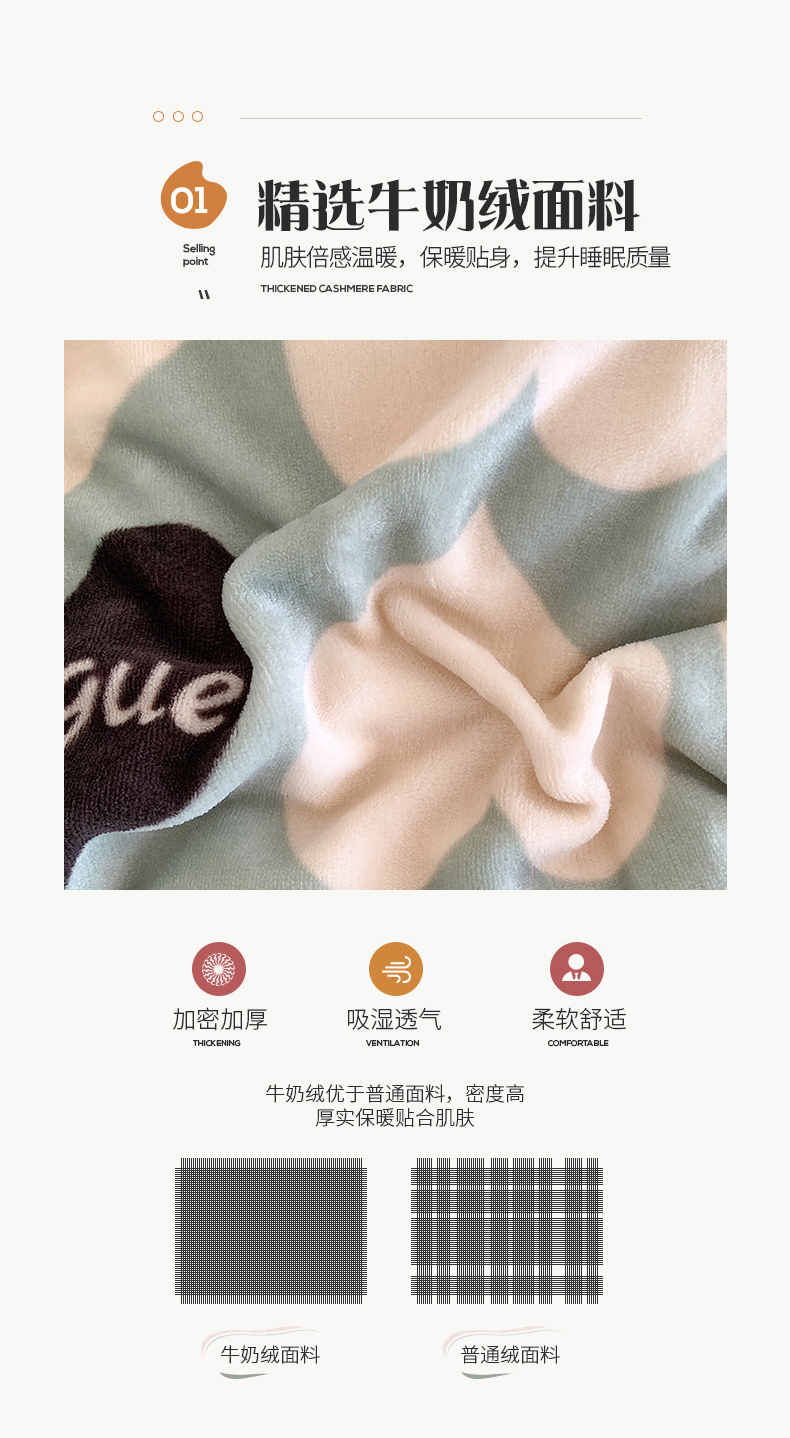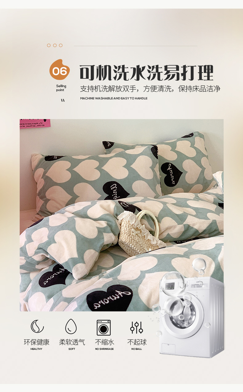 桃子家居 2023新款ins少女甜酷多巴胺粉墨加厚牛奶绒系列四件套 绒-抹茶心语