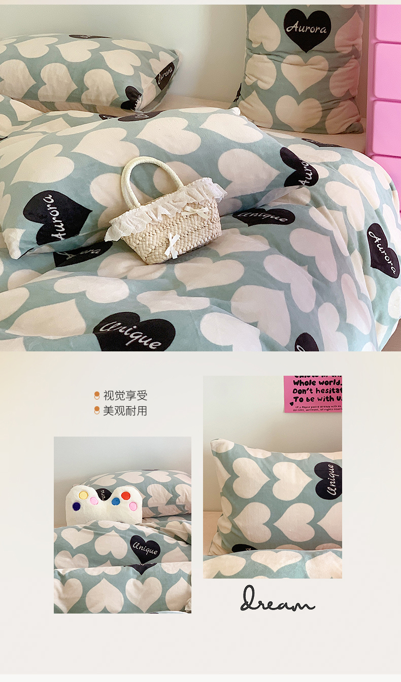 商品名称:桃子家居 2023新款ins少女甜酷多巴胺粉墨加厚牛奶绒系列四件套 绒-抹茶心语