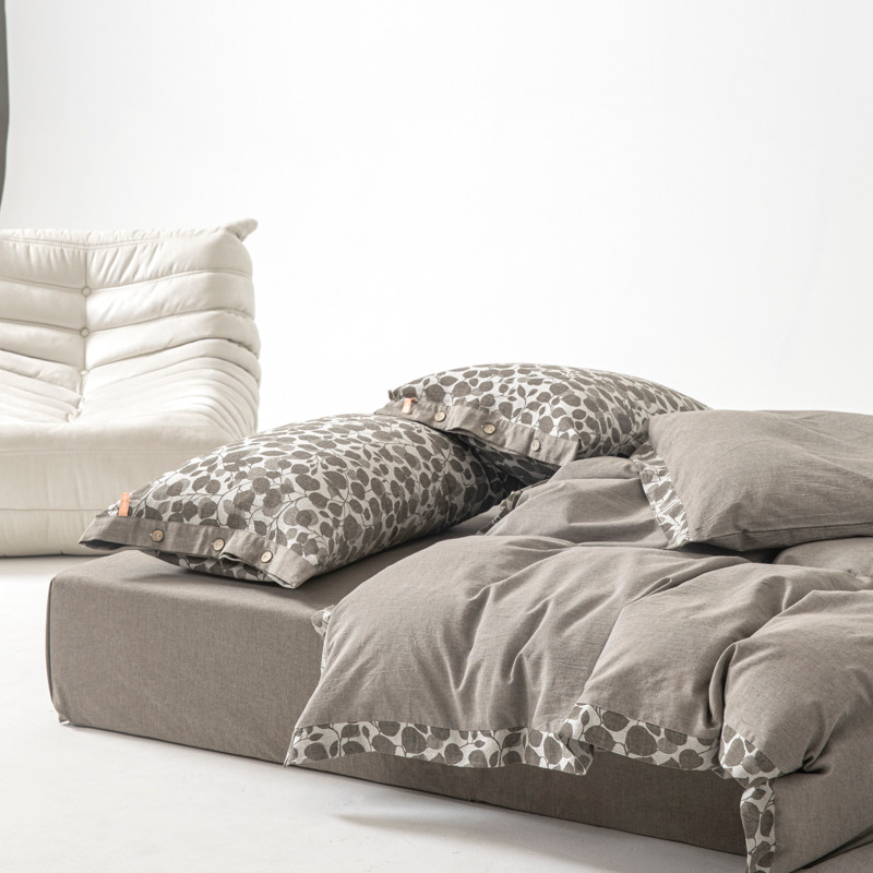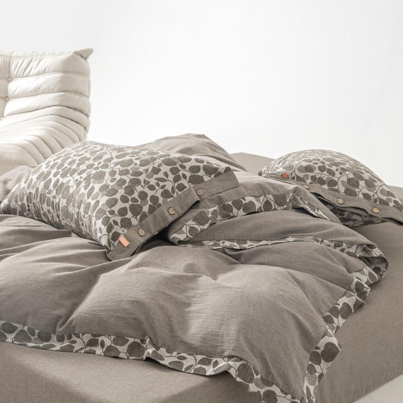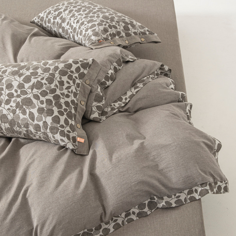当前位置: 91家纺网 > 商品网购 > 床品套件 > 四件套 > 全棉普通四件套 > 安莱生活 2023新款A类简约棉麻树叶拼边四件套 棉麻拼边纽扣款-浅灰