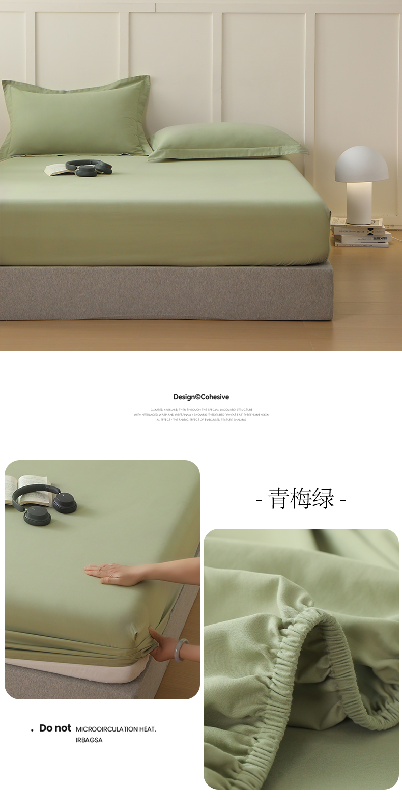 商品名称:云栖家居 2023A类纯色纯棉磨毛单床笠 青梅绿