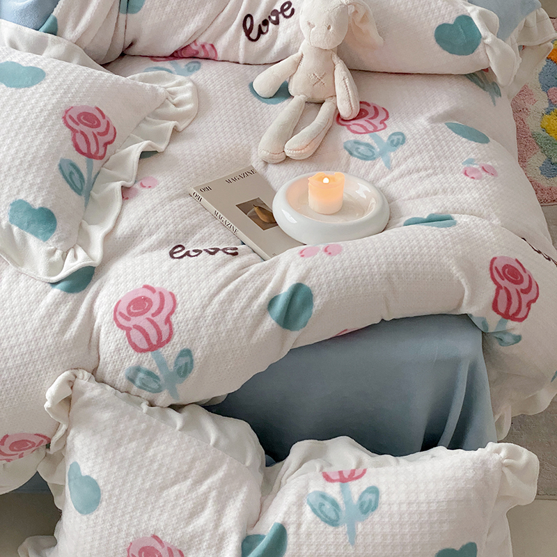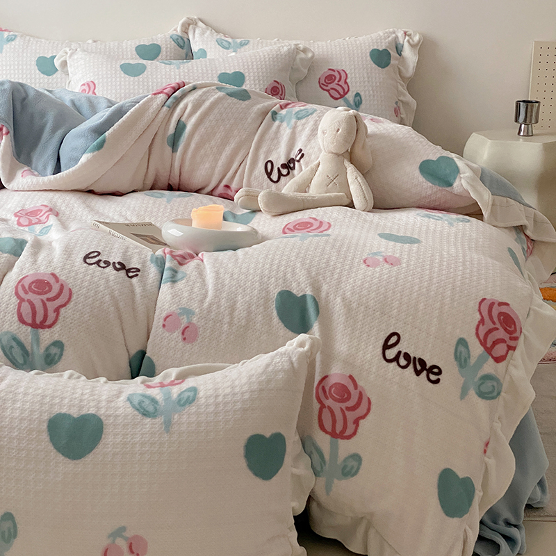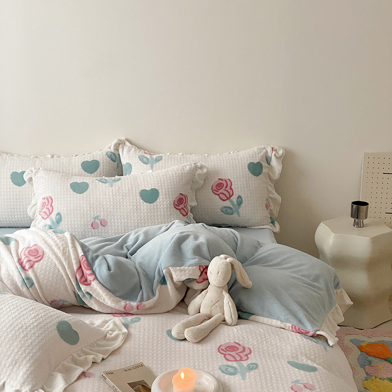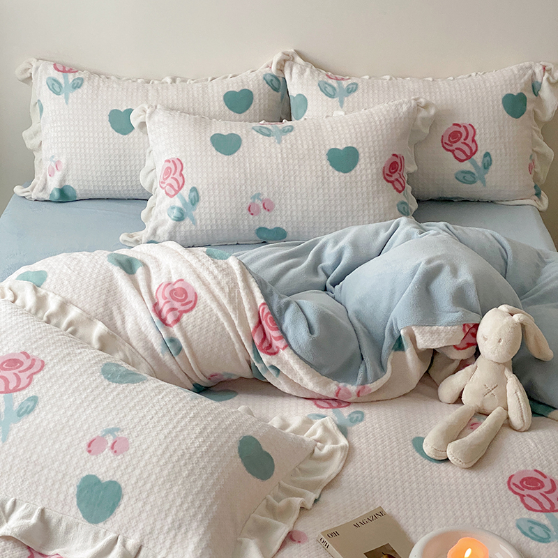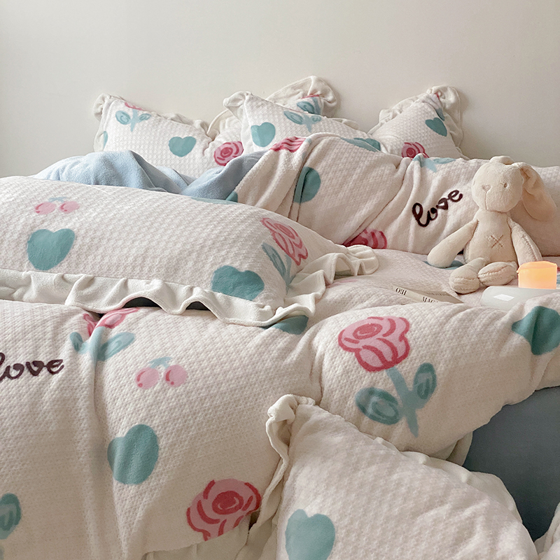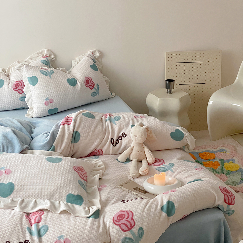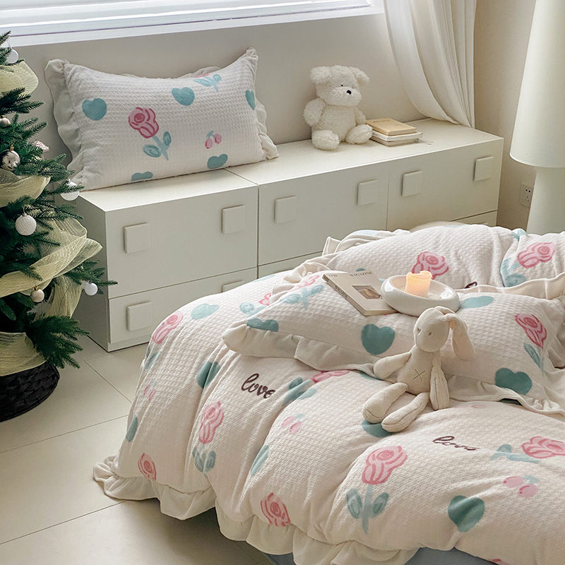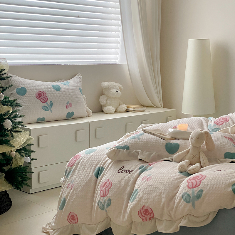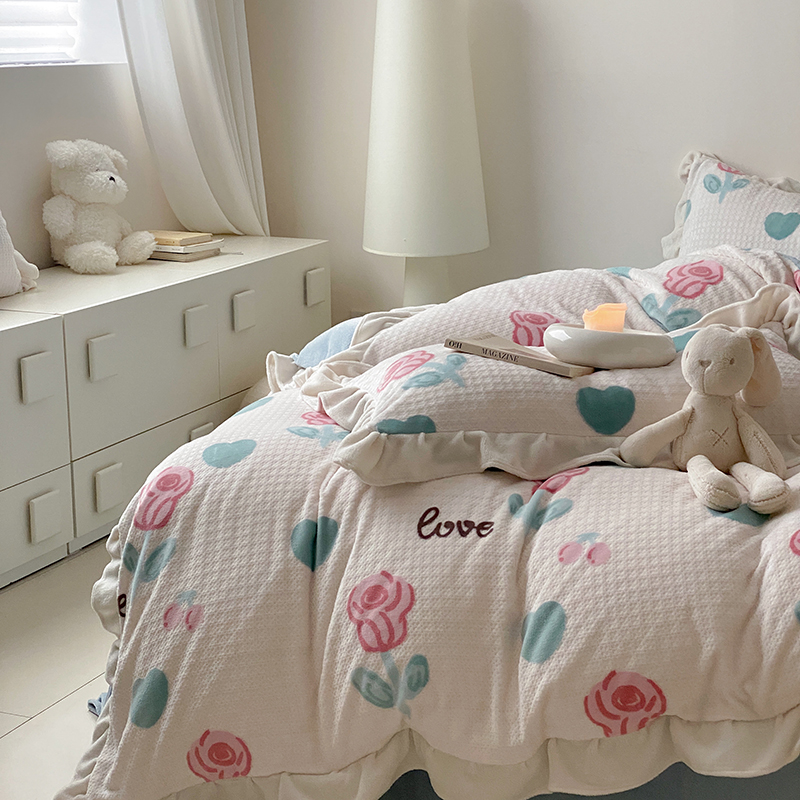 (总)潘朵拉家纺 2023新款雕花韩式华夫格花边牛奶绒四件套 ,车厘子,淡妆初夏,粉色心情,果酱熊,开心熊宝,绿色心情,南梦花园,暖心玫瑰,暖心玫瑰(粉),球球精灵,小情调,小情调(蓝),幸运鳄,樱樱花语,樱樱花语(绿)