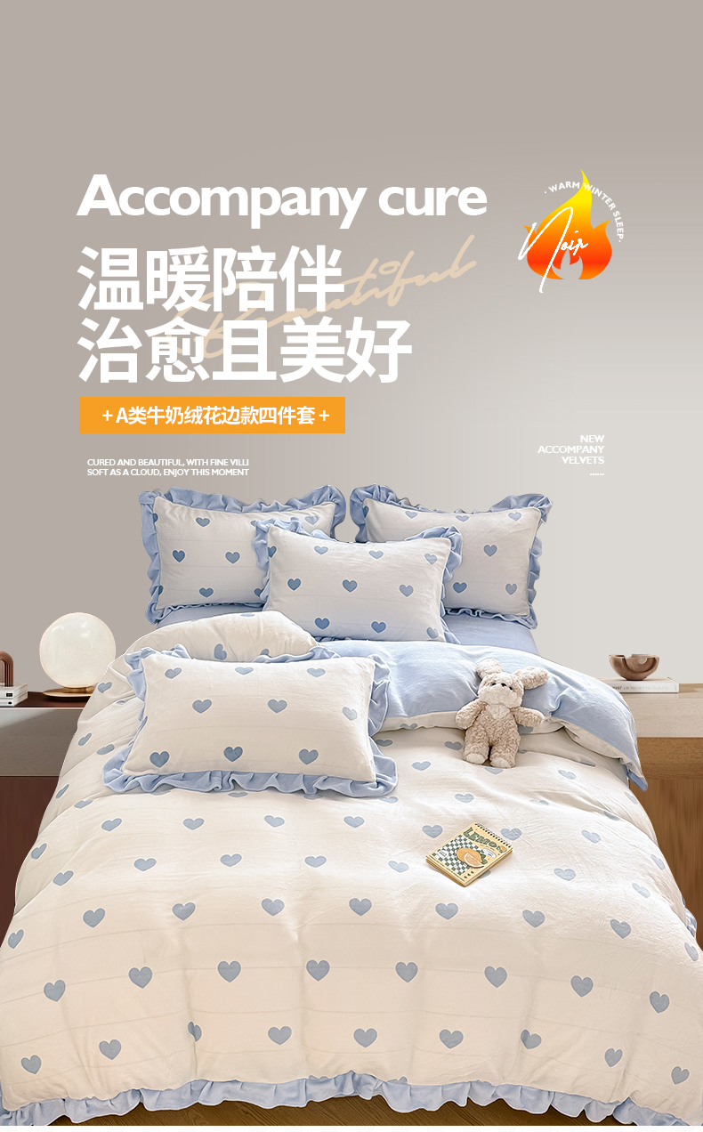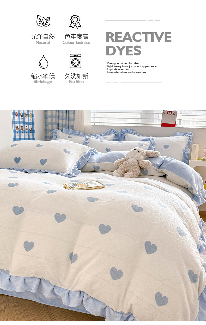 懒猫家纺 2024新款韩版牛奶绒四件套 小爱心