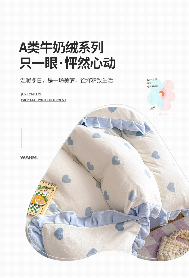 商品名称:懒猫家纺 2024新款韩版牛奶绒四件套 小爱心
