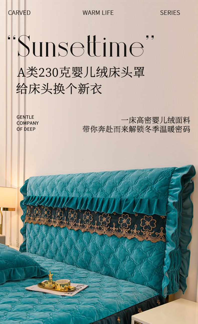 商品名称:源梦家纺 2023新款A类230克婴儿绒床头罩-盛世牡丹 盛世牡丹-湖蓝色