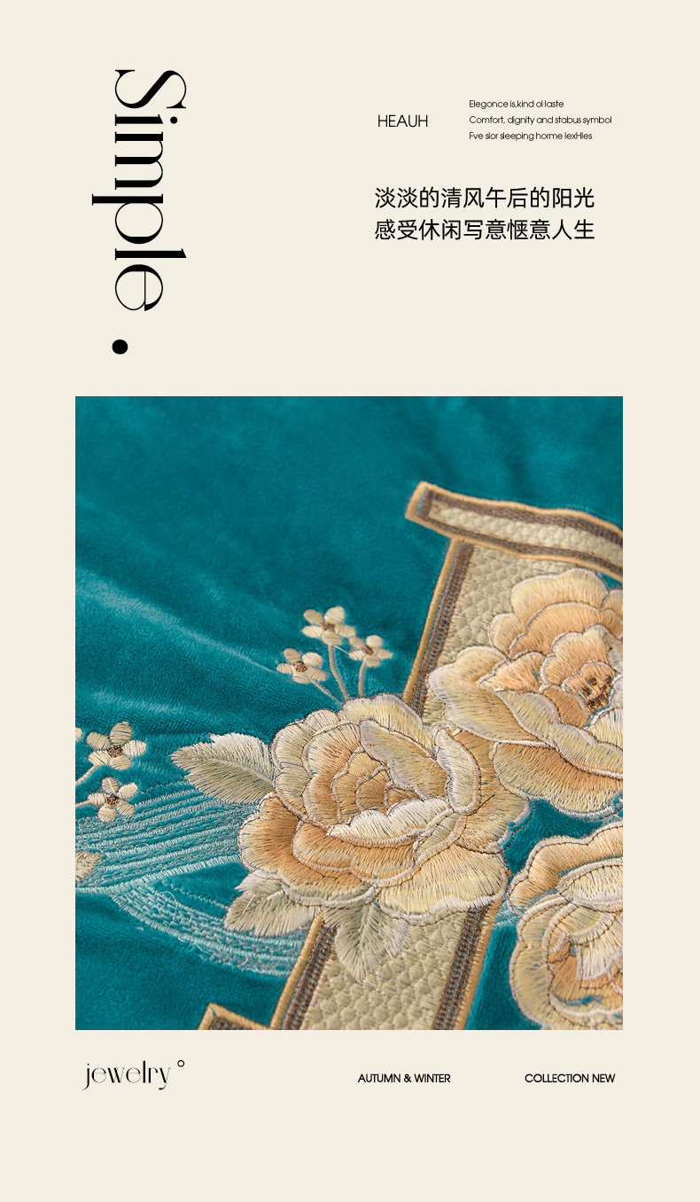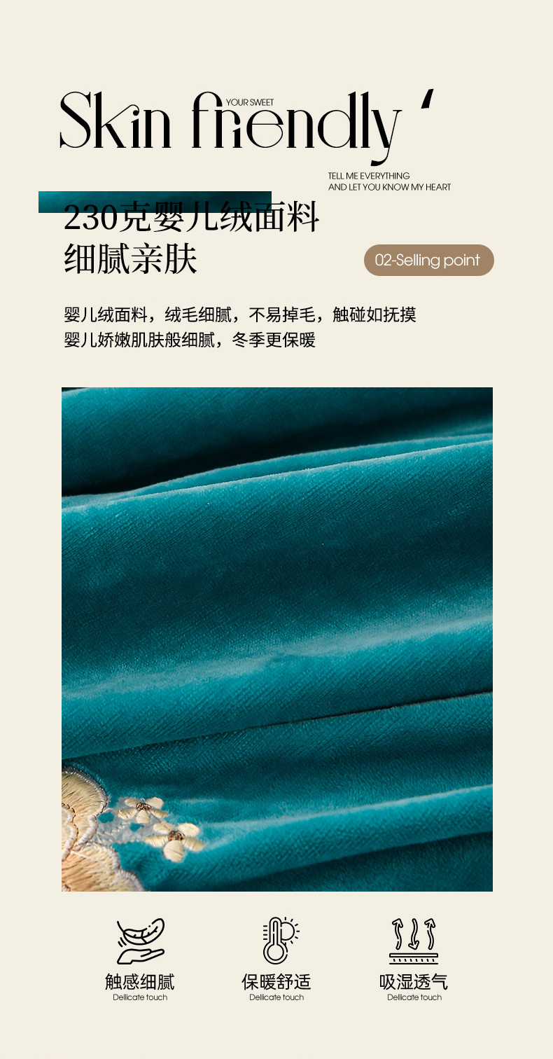 源梦家纺 2023新款A类230克婴儿绒四件套-盛世牡丹 盛世牡丹-湖蓝色