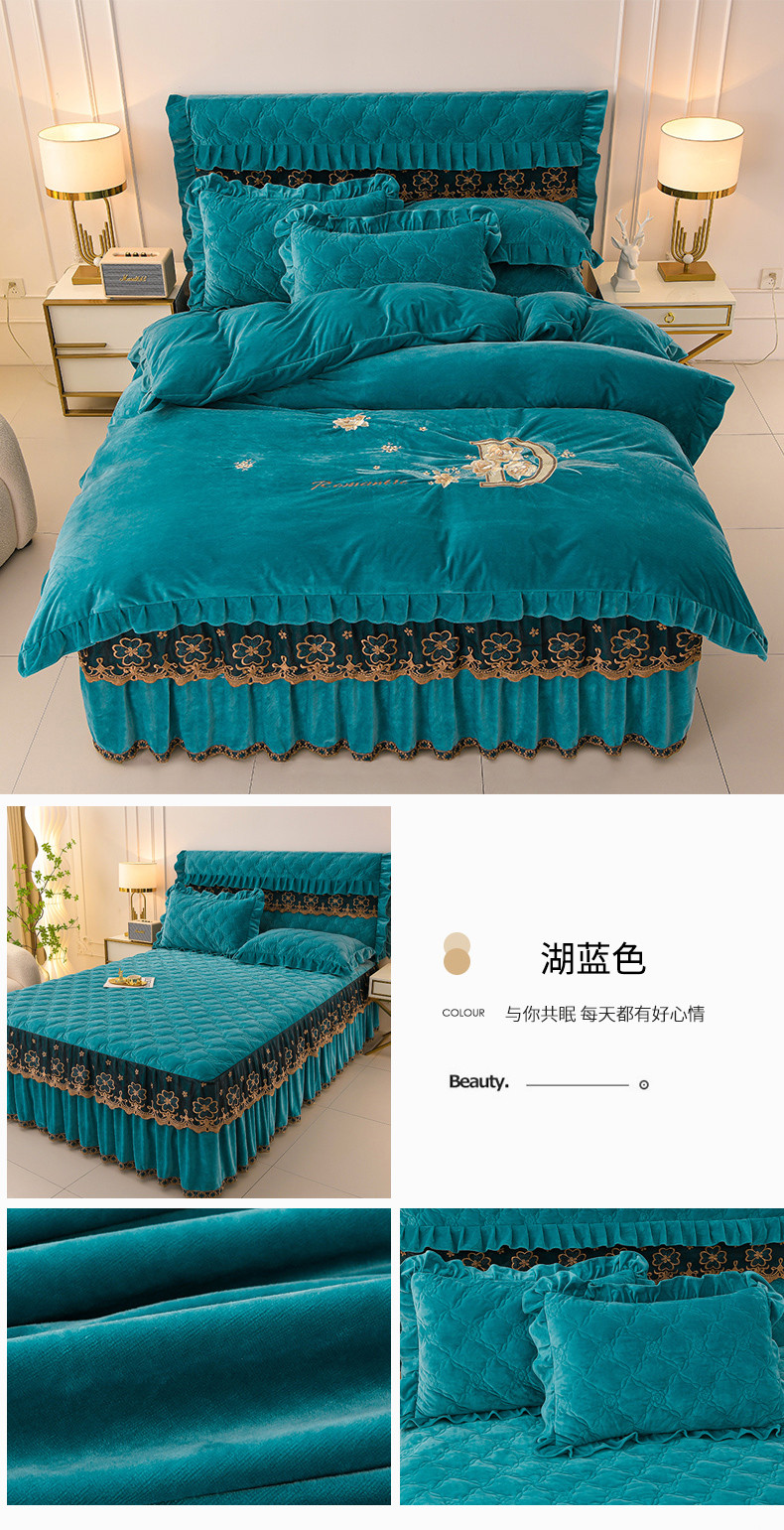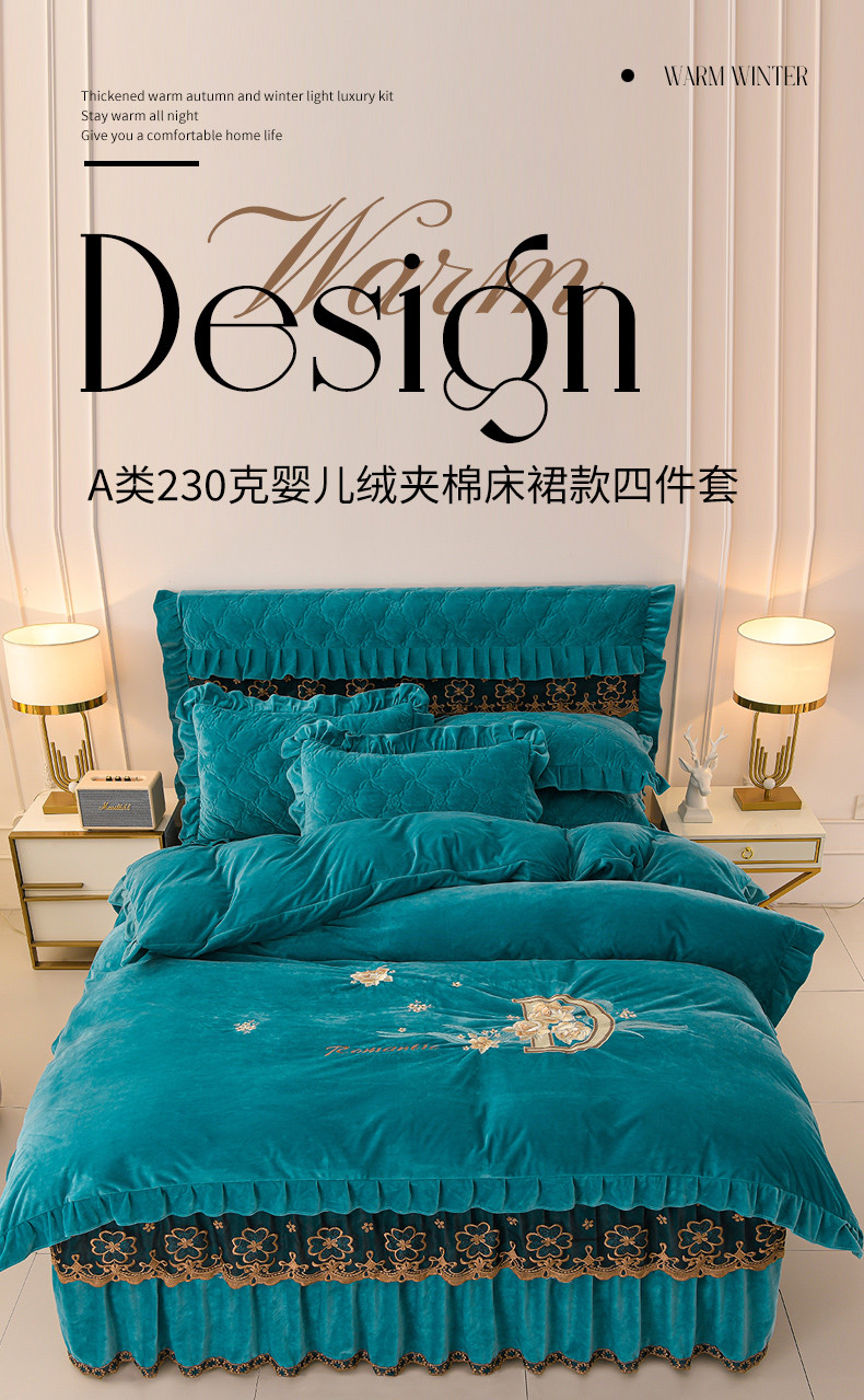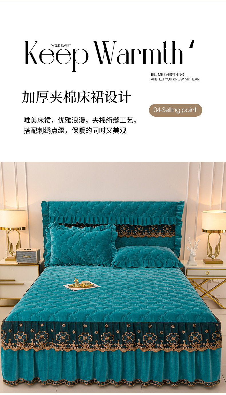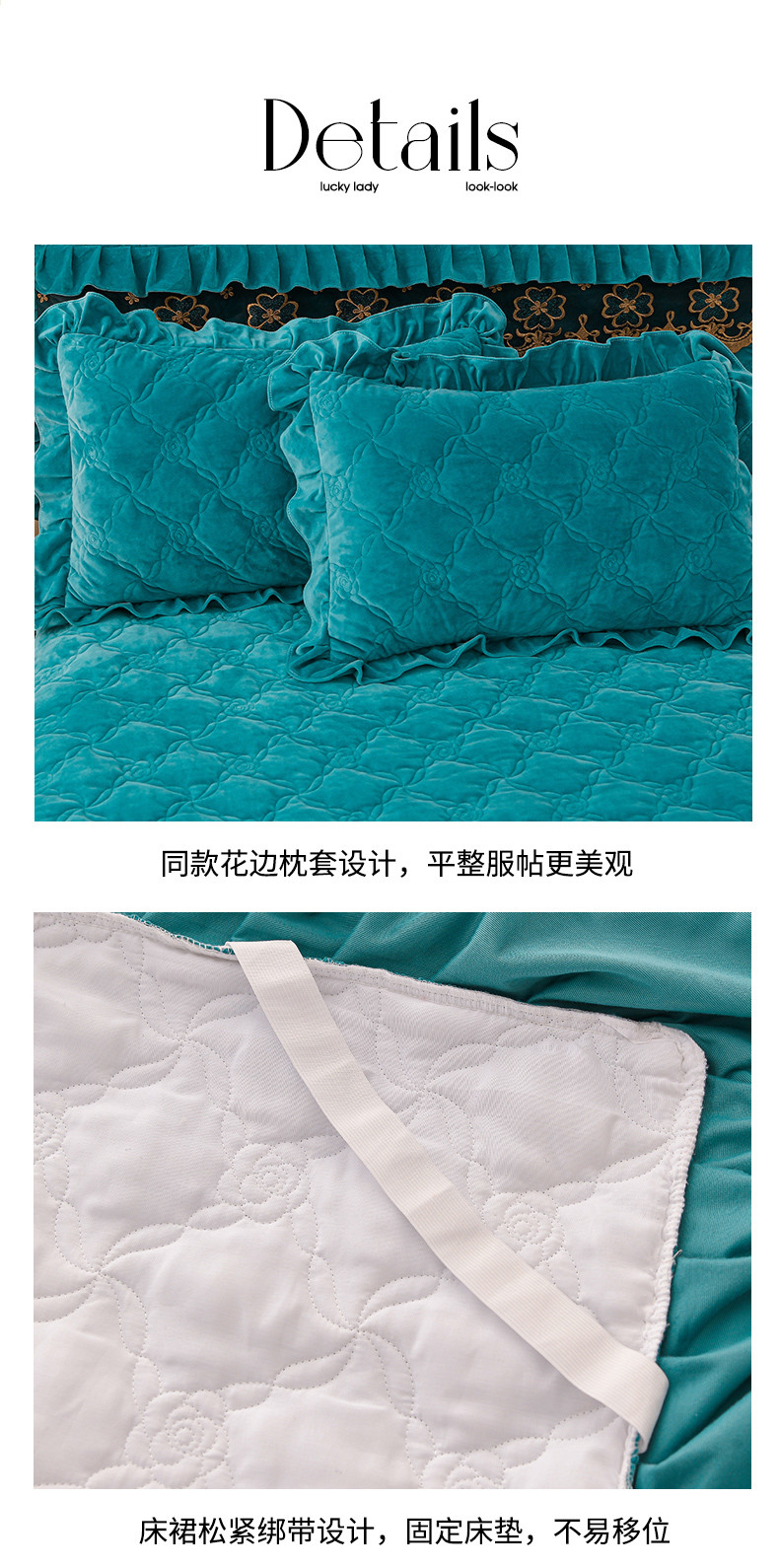 (总)怡源梦 2025新款A类牛奶绒夹棉床裙单件-甜心公主系列,米白色,大红色,粉玉色,灰色,咖色,绿色,紫色