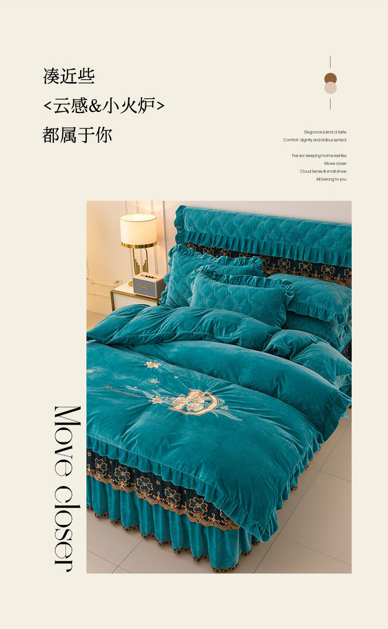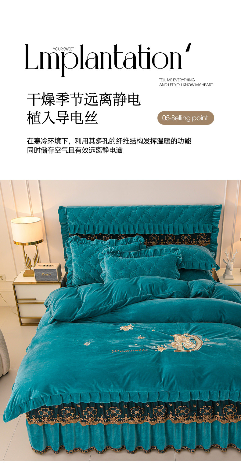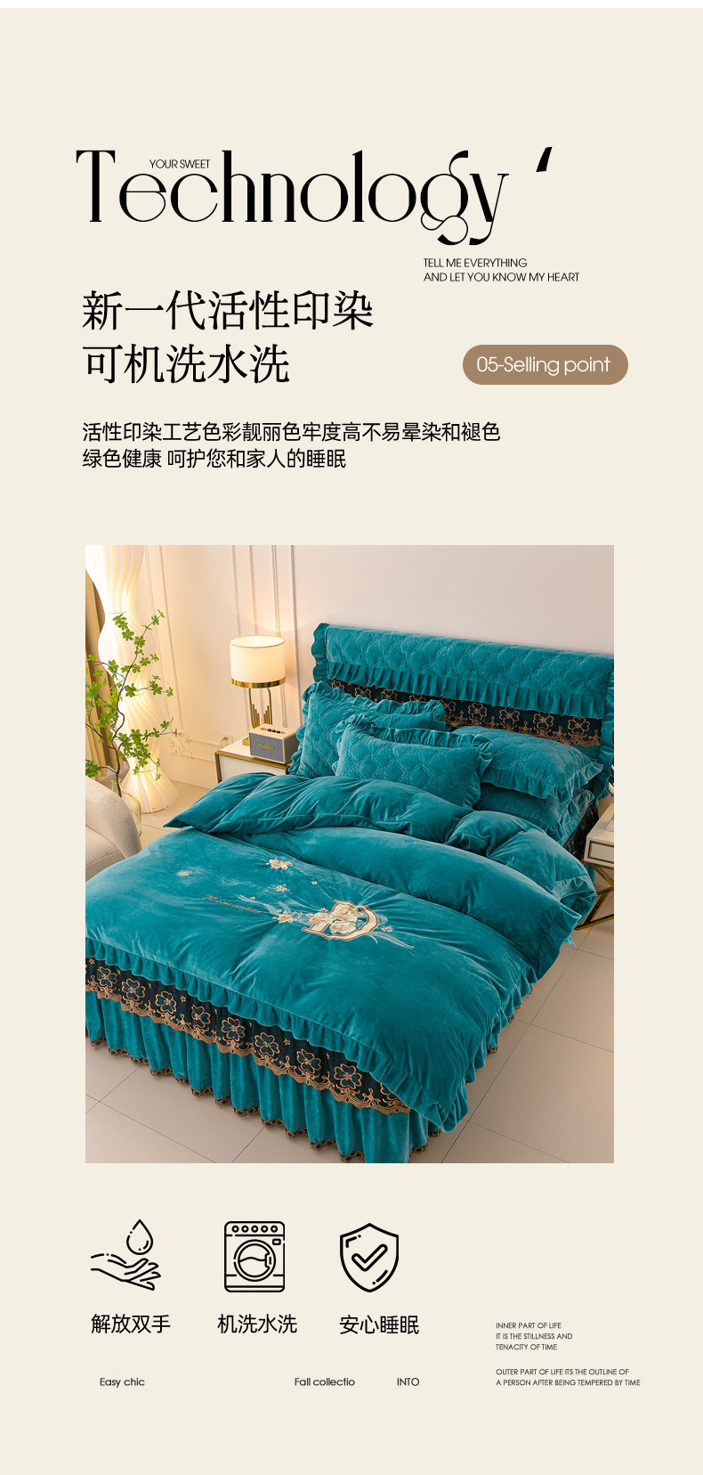 (总)怡源梦 2025新款牛奶绒床裙四件套-甜心公主系列,米白色,大红色,粉玉色,灰色,咖色,绿色,紫色