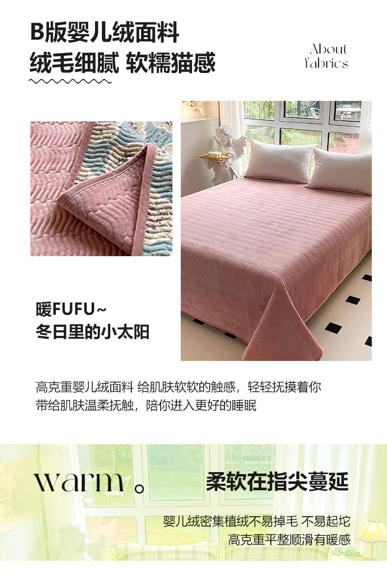 • 91家纺网 家纺一手货源 找家纺 2024新款40支棉加绒单床盖三件套双面可用全棉加厚婴儿绒 法蕴