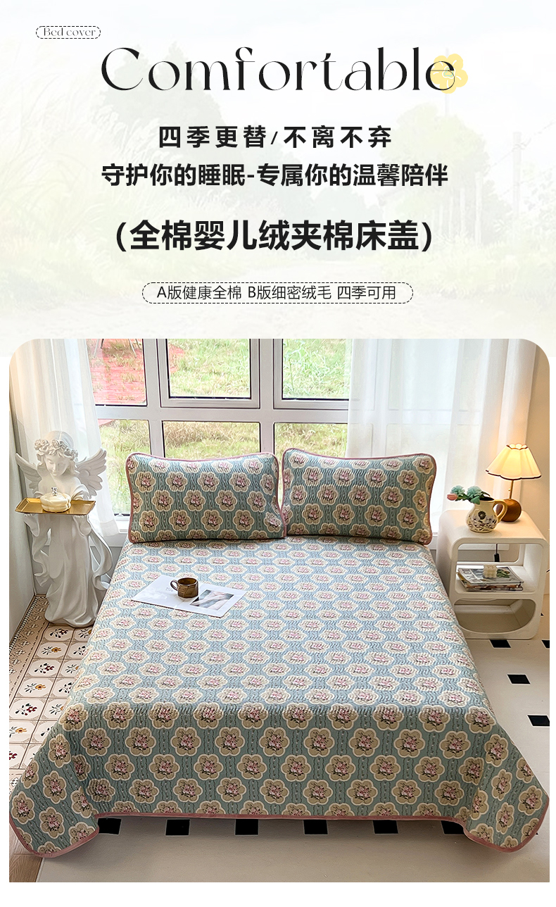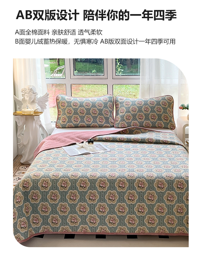 2024新款40支棉加绒单床盖三件套双面可用全棉加厚婴儿绒 法蕴