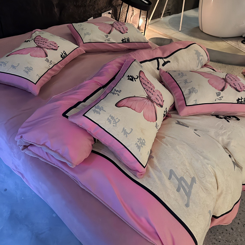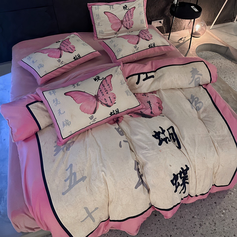 色鬼 2023新款轻奢潮牌大牌风棉加绒四件套印花牛奶绒四件套 新中式