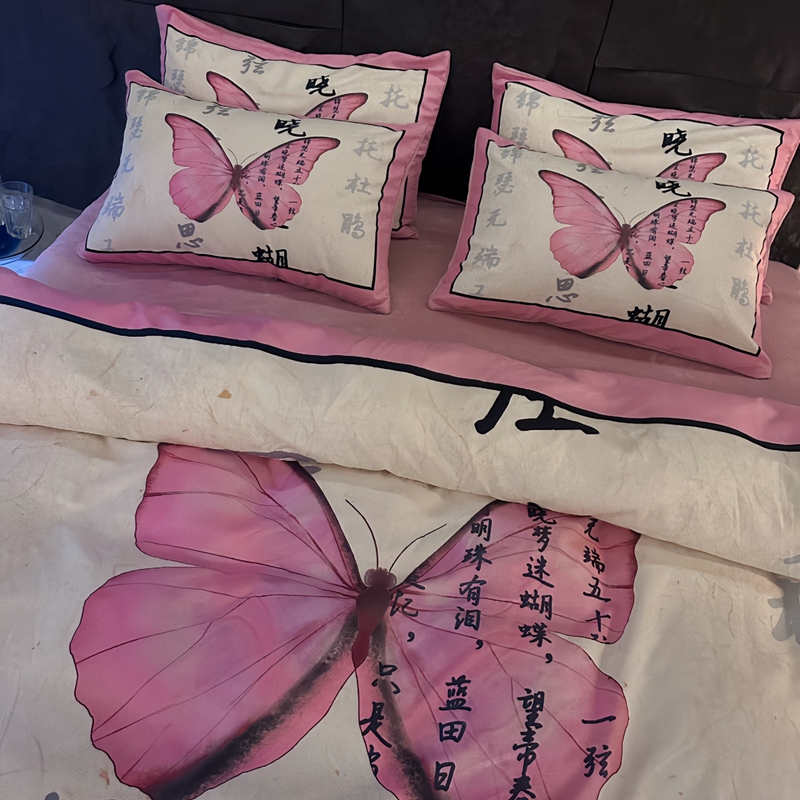 (总)色鬼布艺 2025新款轻奢獭兔毛绒四件套美拉德风法式四件套牛奶绒四件套,蝴蝶,玫瑰-咖,玫瑰-绿,千鸟格,夕颜