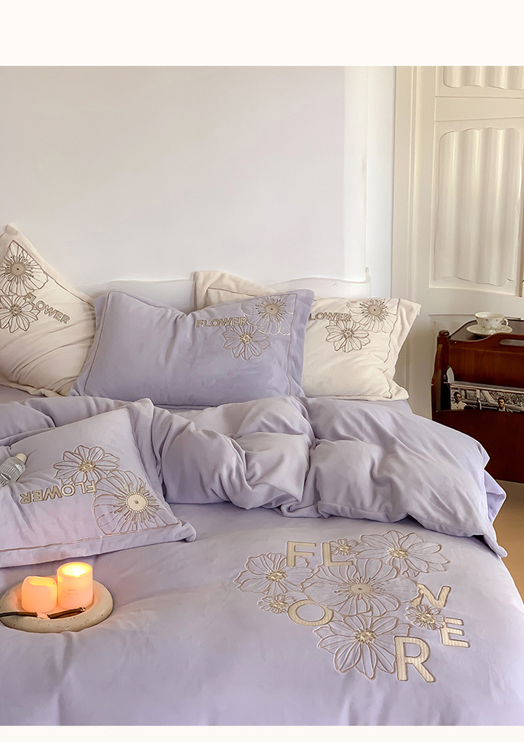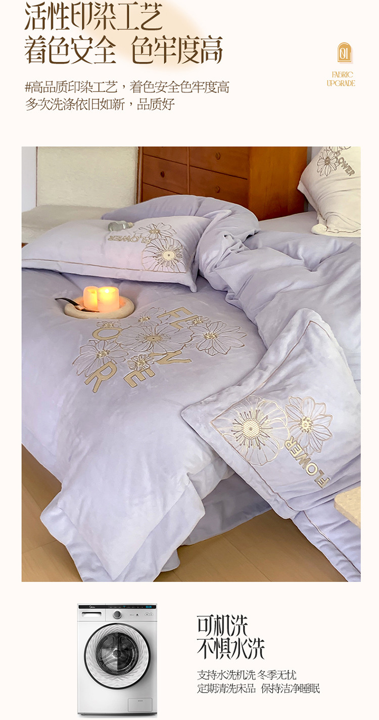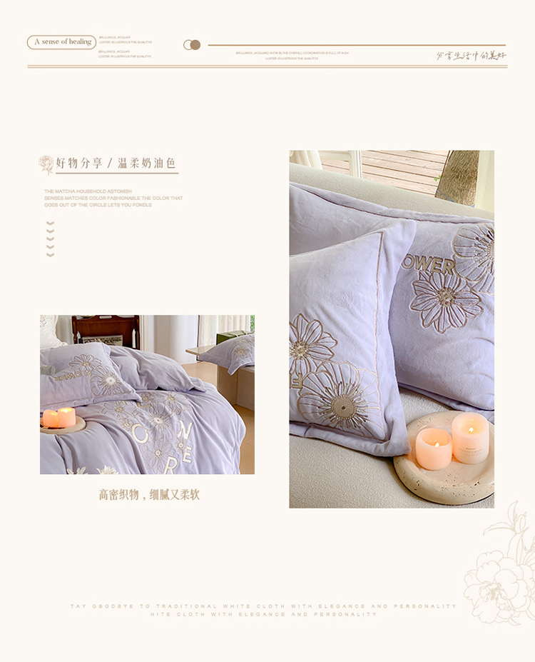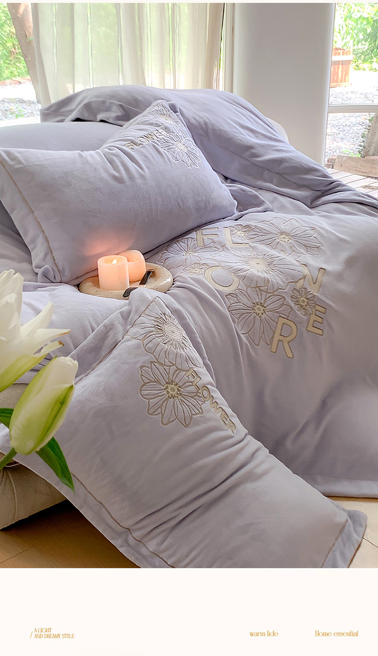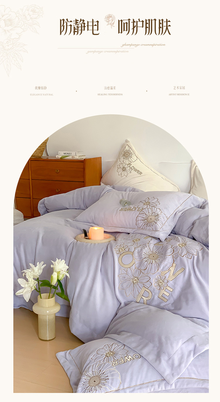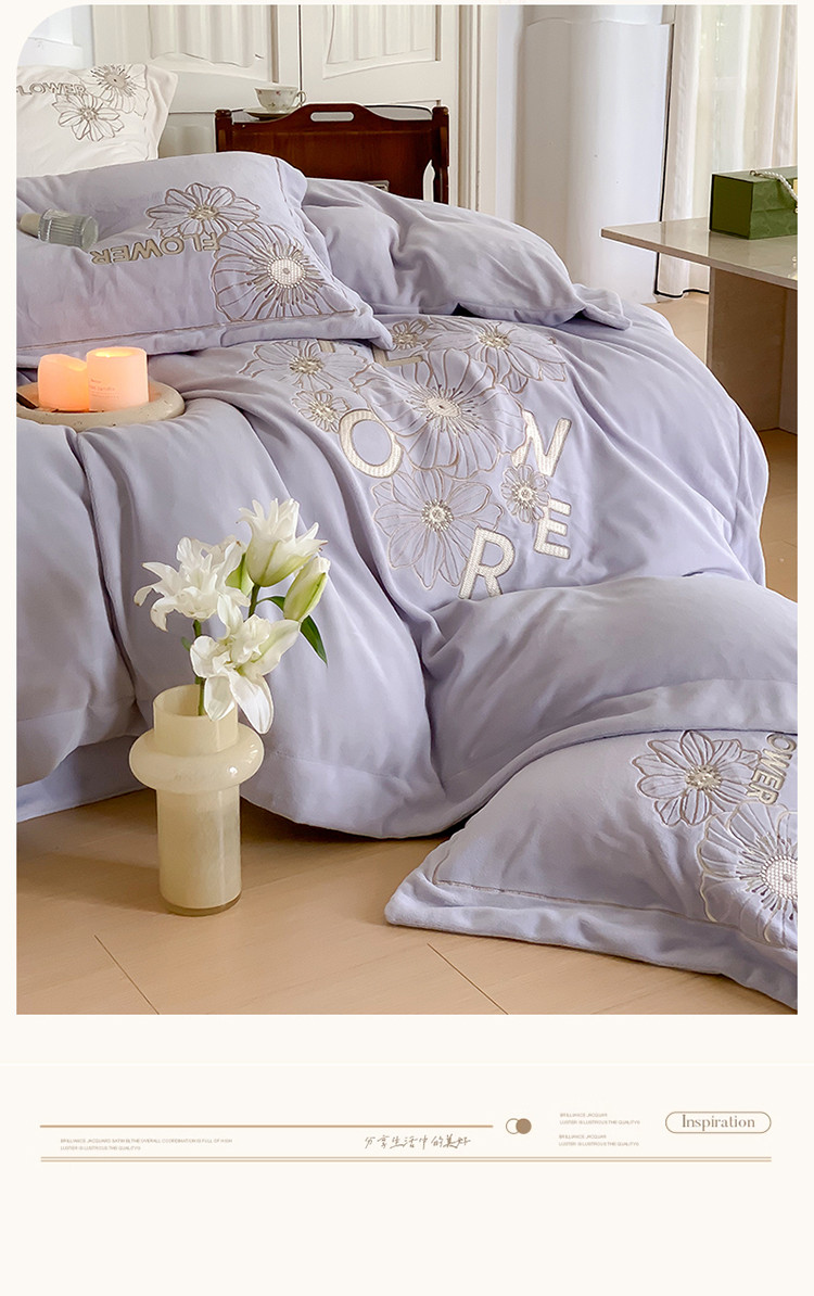 名品优仓 2023新款高克重230克牛奶绒绣花款四件套-伊莲娜 伊莲娜-风铃紫