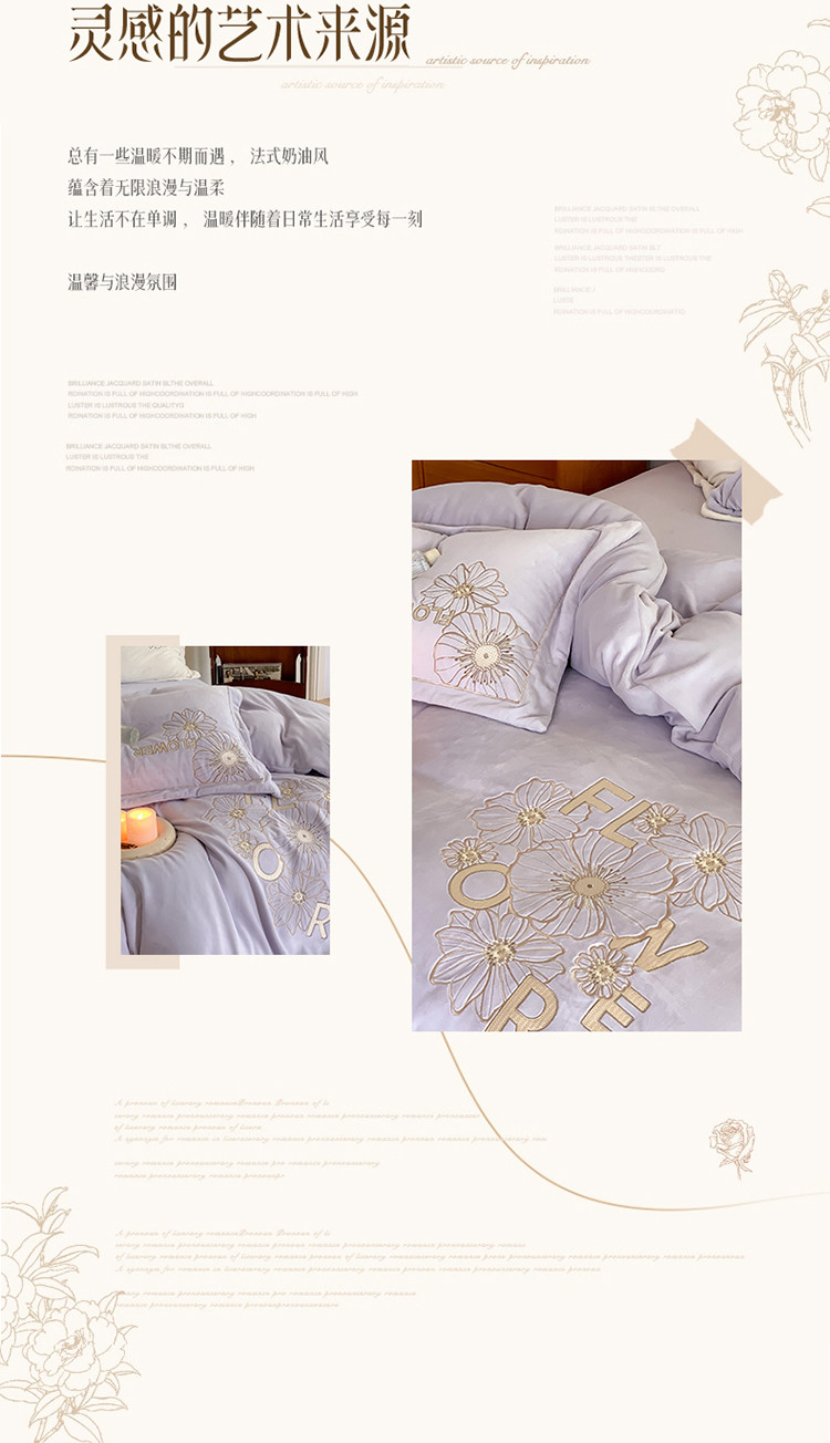 商品名称:名品优仓 2023新款高克重230克牛奶绒绣花款四件套-伊莲娜 伊莲娜-风铃紫