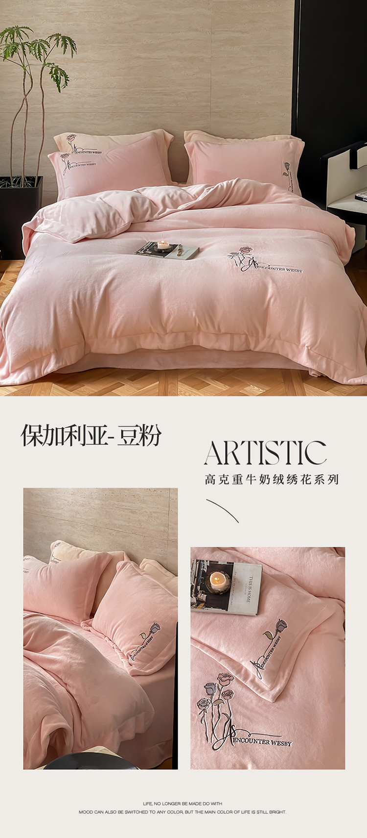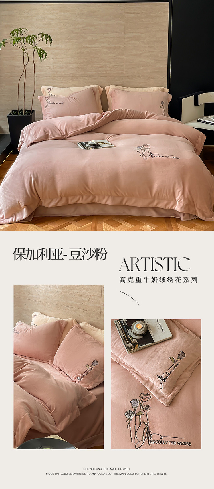 (总)名品优仓 2025新款220克牛奶绒绣花四件套-珊瑚,珊瑚-宝石蓝,珊瑚-粉色,珊瑚-姜黄,珊瑚-米杏,珊瑚-沫粉,珊瑚-杏粉
