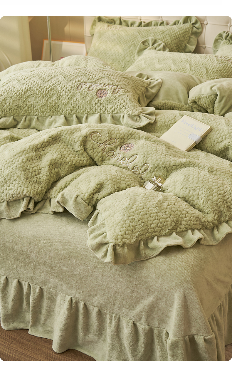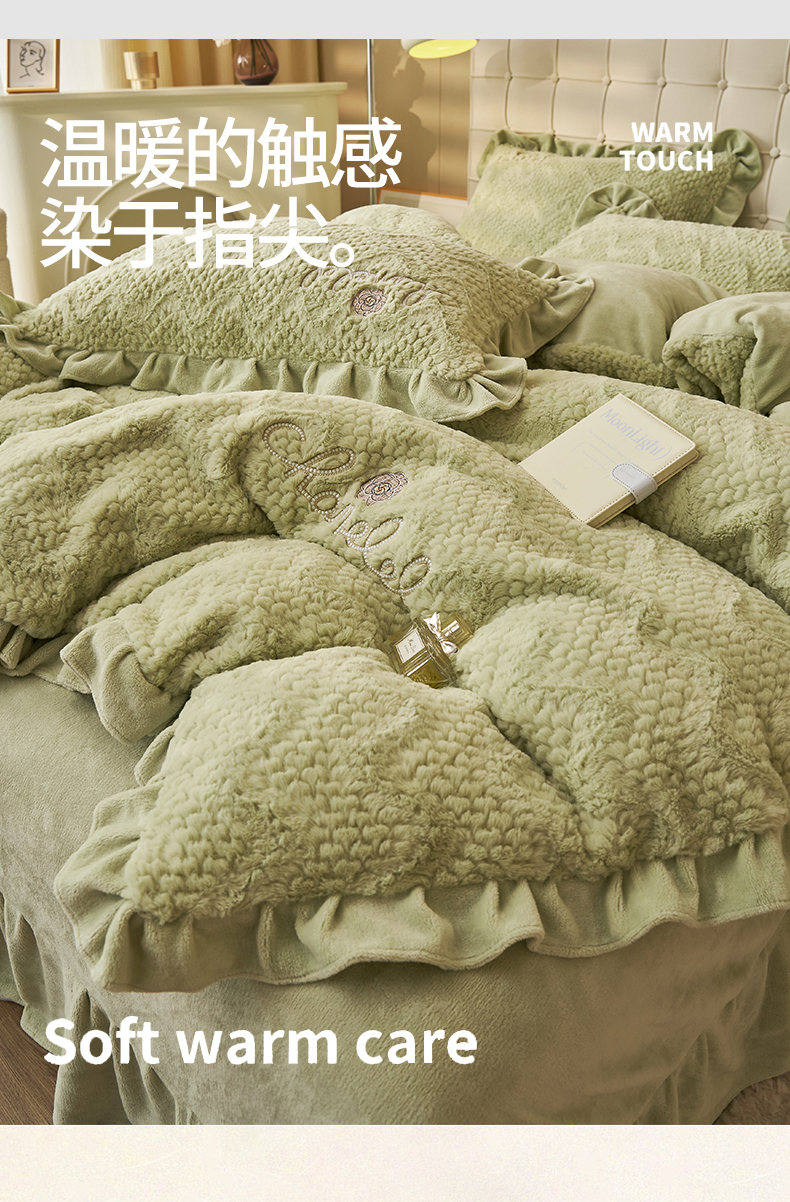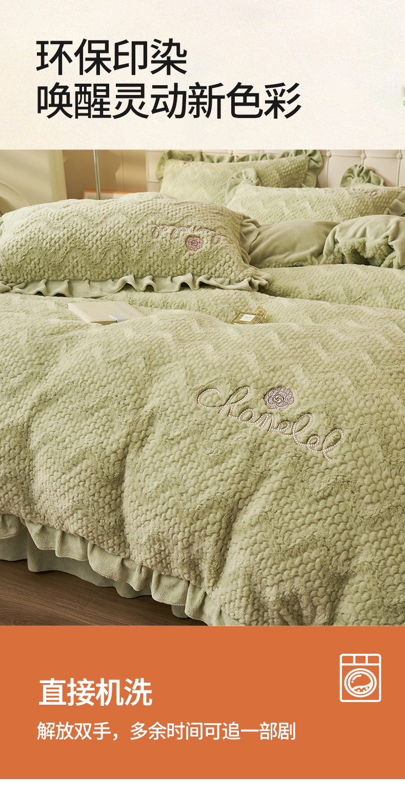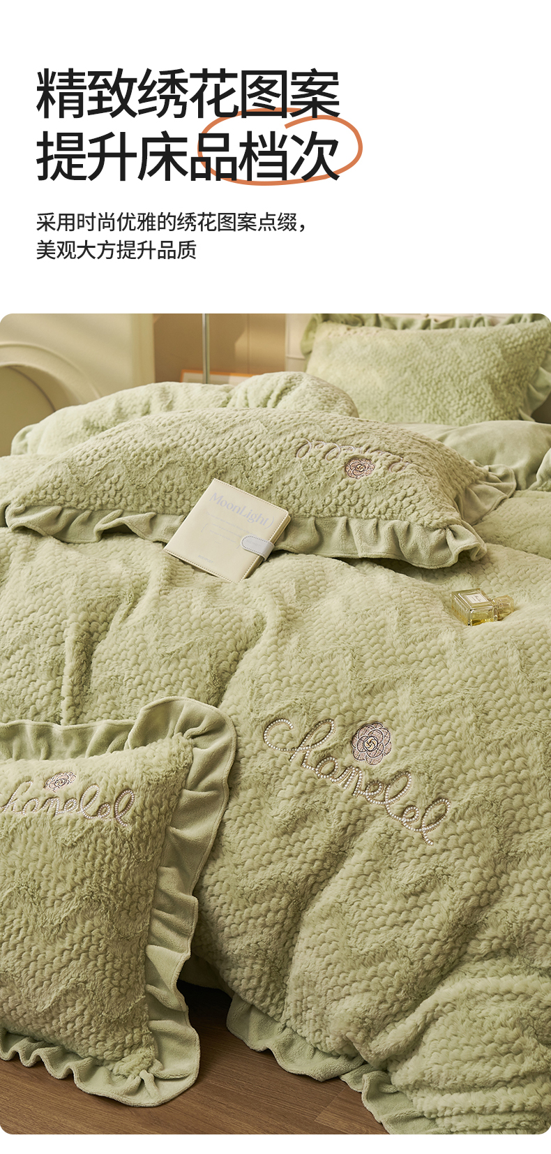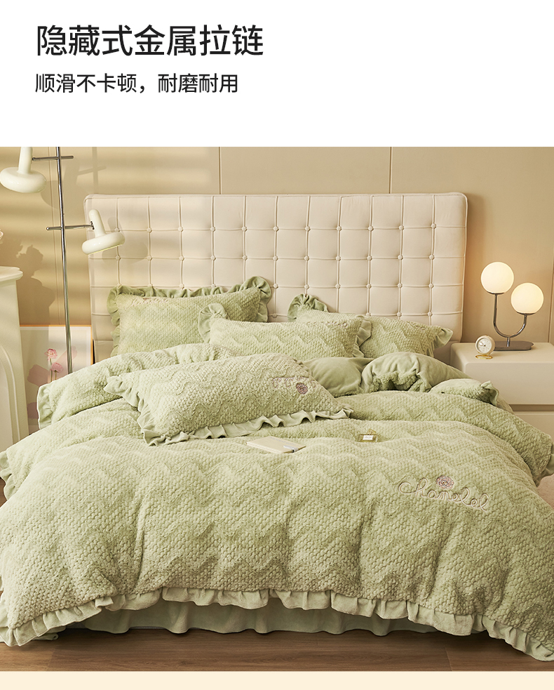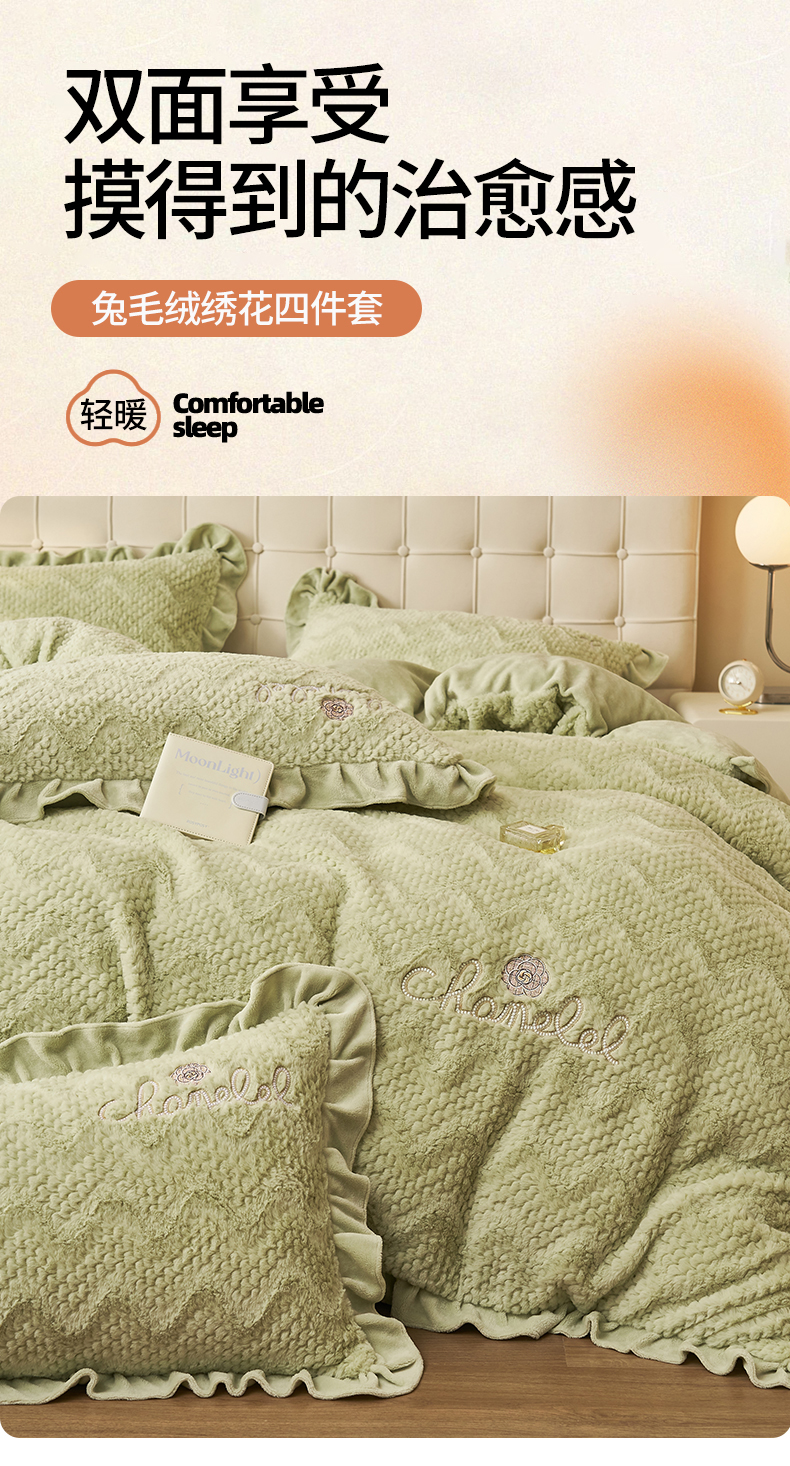 恒爱家纺 2023新款兔毛绒绣花四件套 波浪款-浅绿