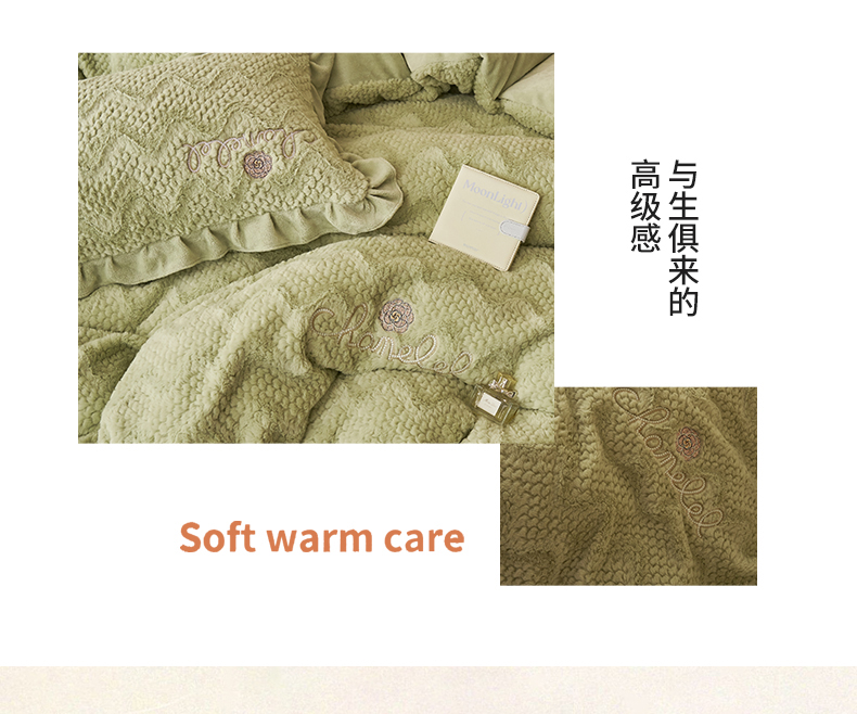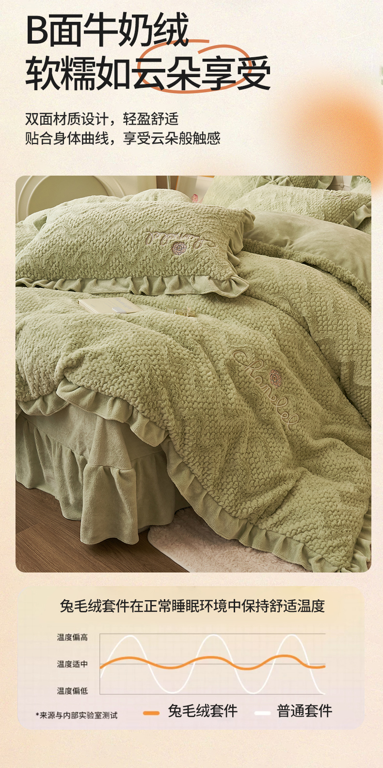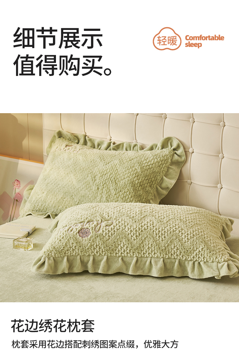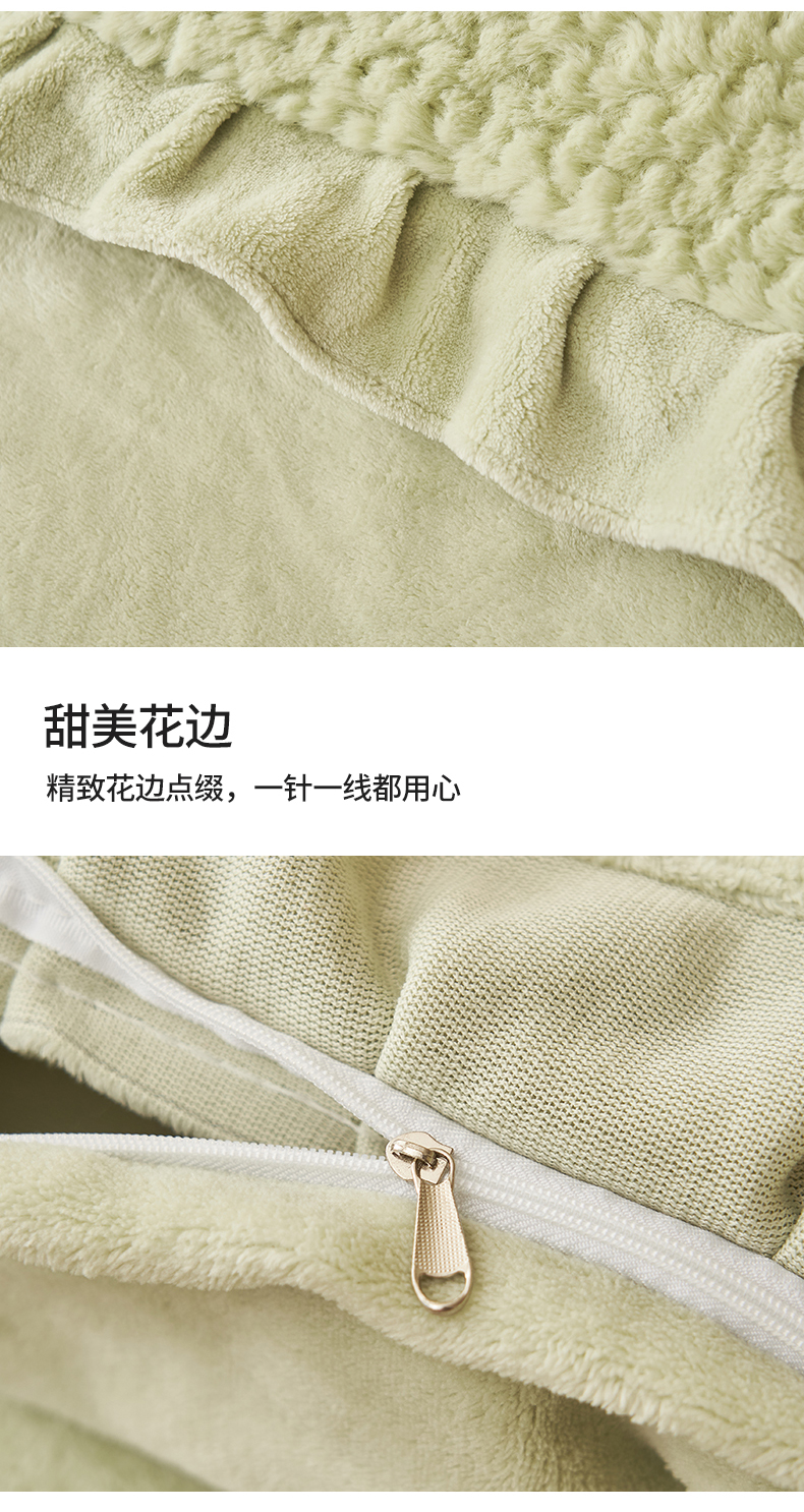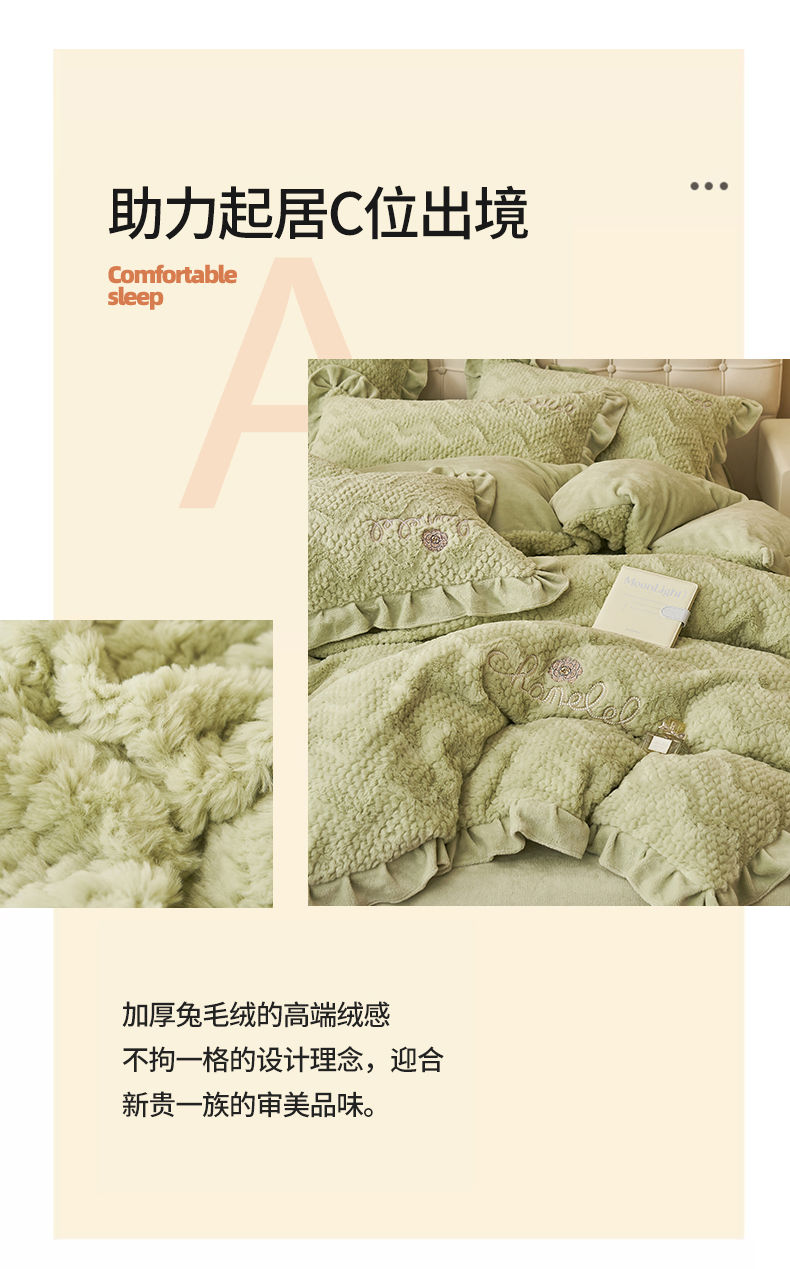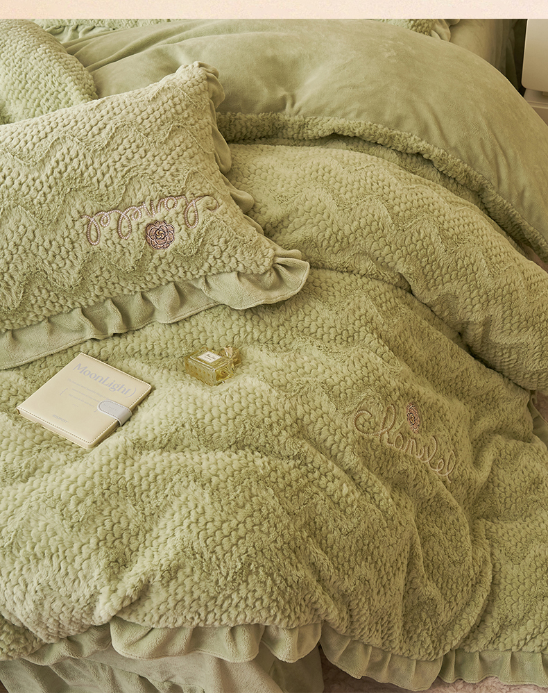 恒爱家纺 2023新款兔毛绒绣花四件套 波浪款-浅绿