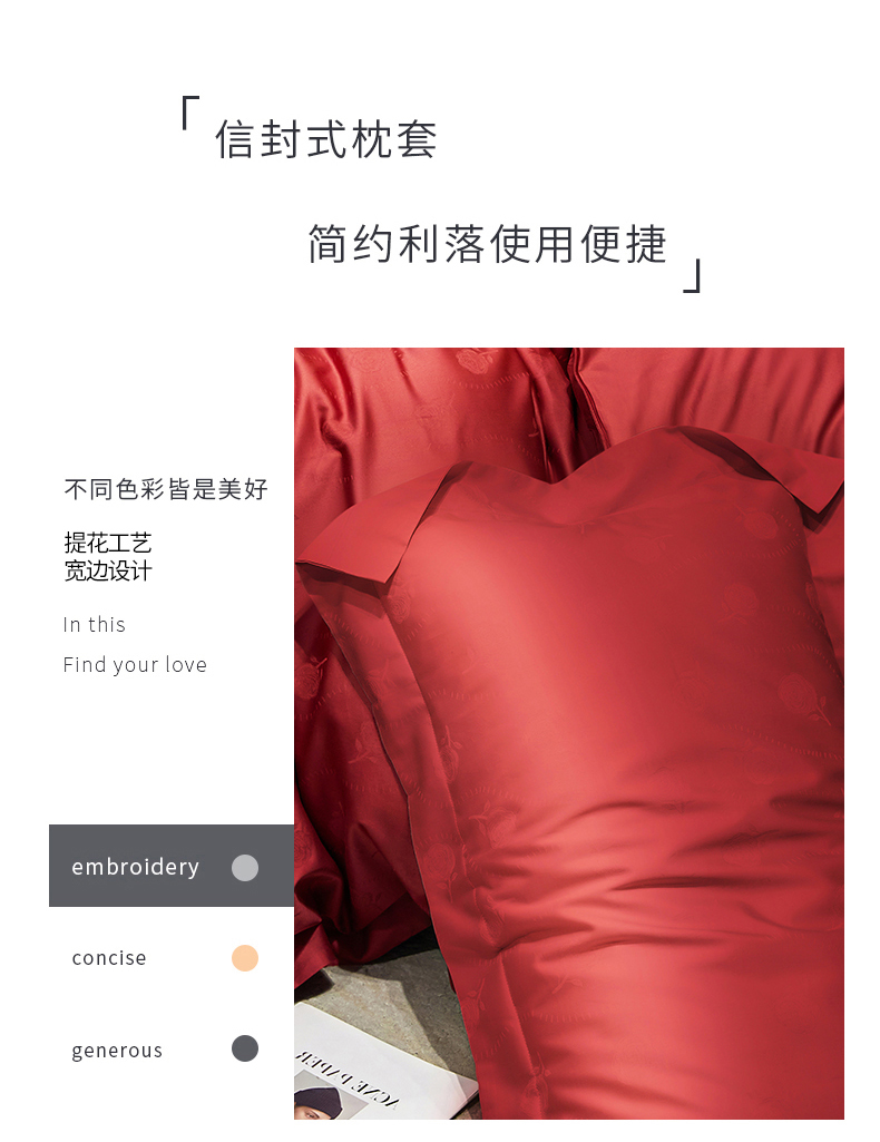 (总)红番天婚庆 2025新款全棉纯棉提花刺绣四件套,金风玉露,倾心