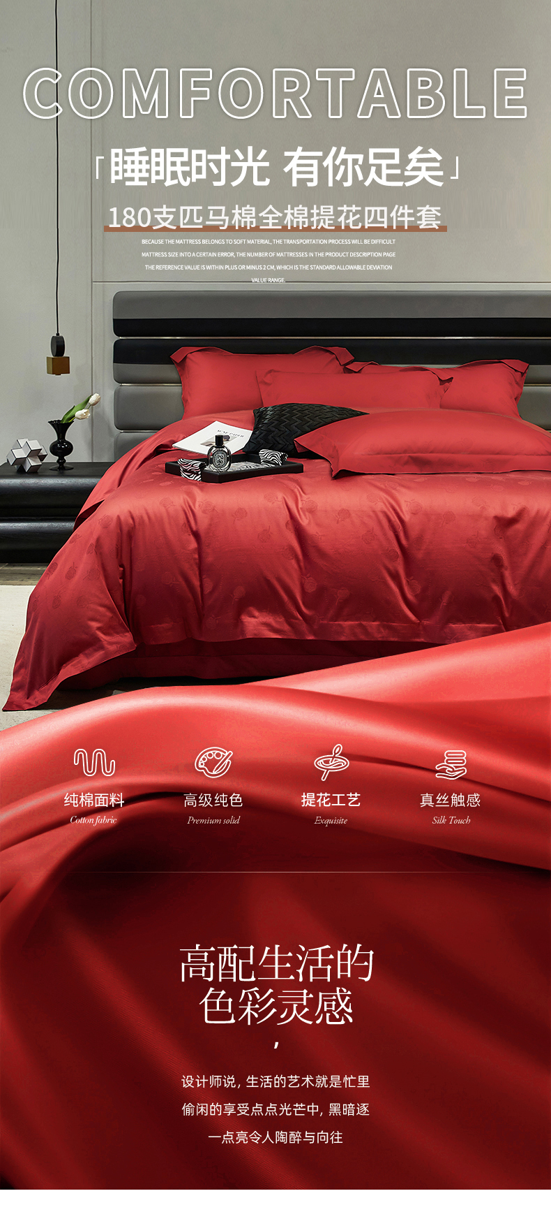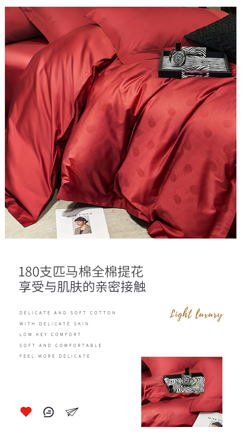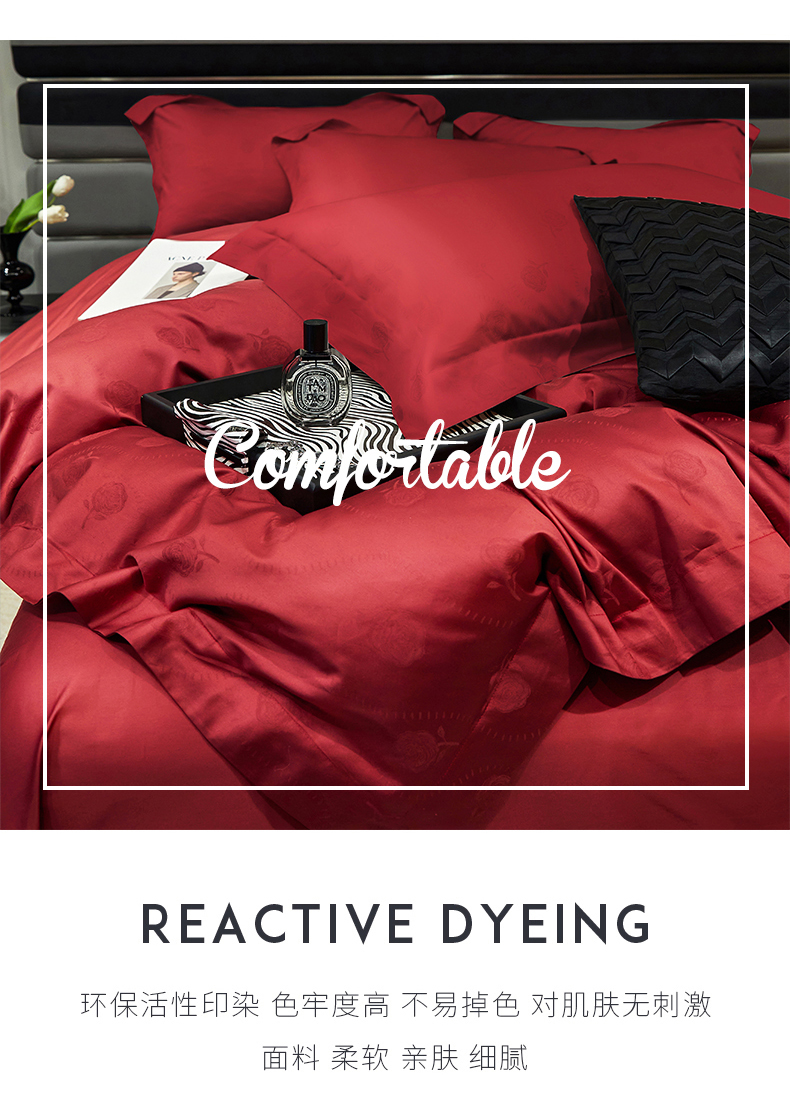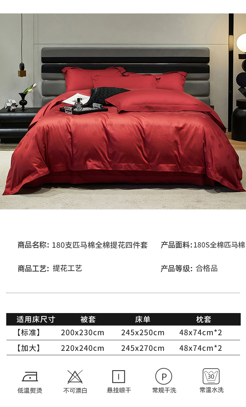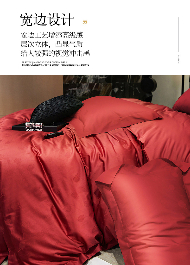 商品名称:红番天婚庆 2023新款长绒棉全棉提花全棉提花四件套--格林系列 格林-勃艮第红