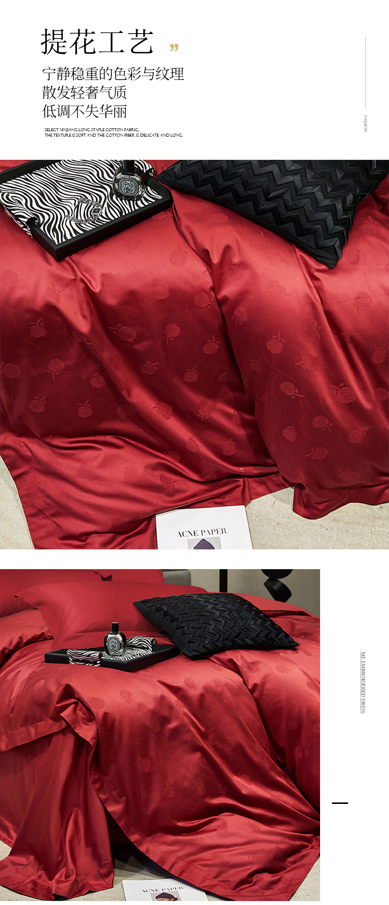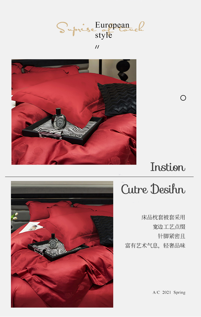 红番天婚庆 2023新款长绒棉全棉提花全棉提花四件套--格林系列 格林-勃艮第红