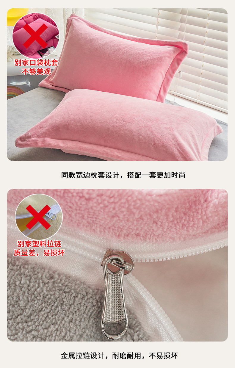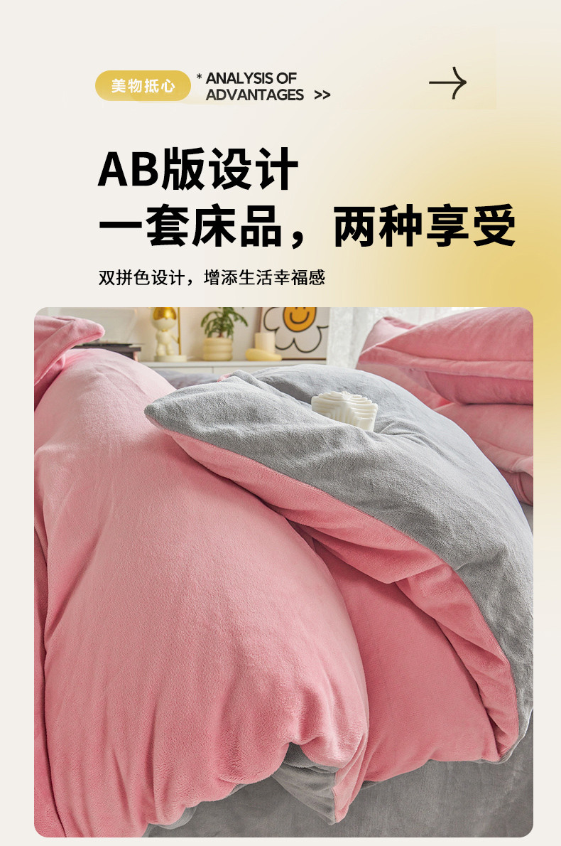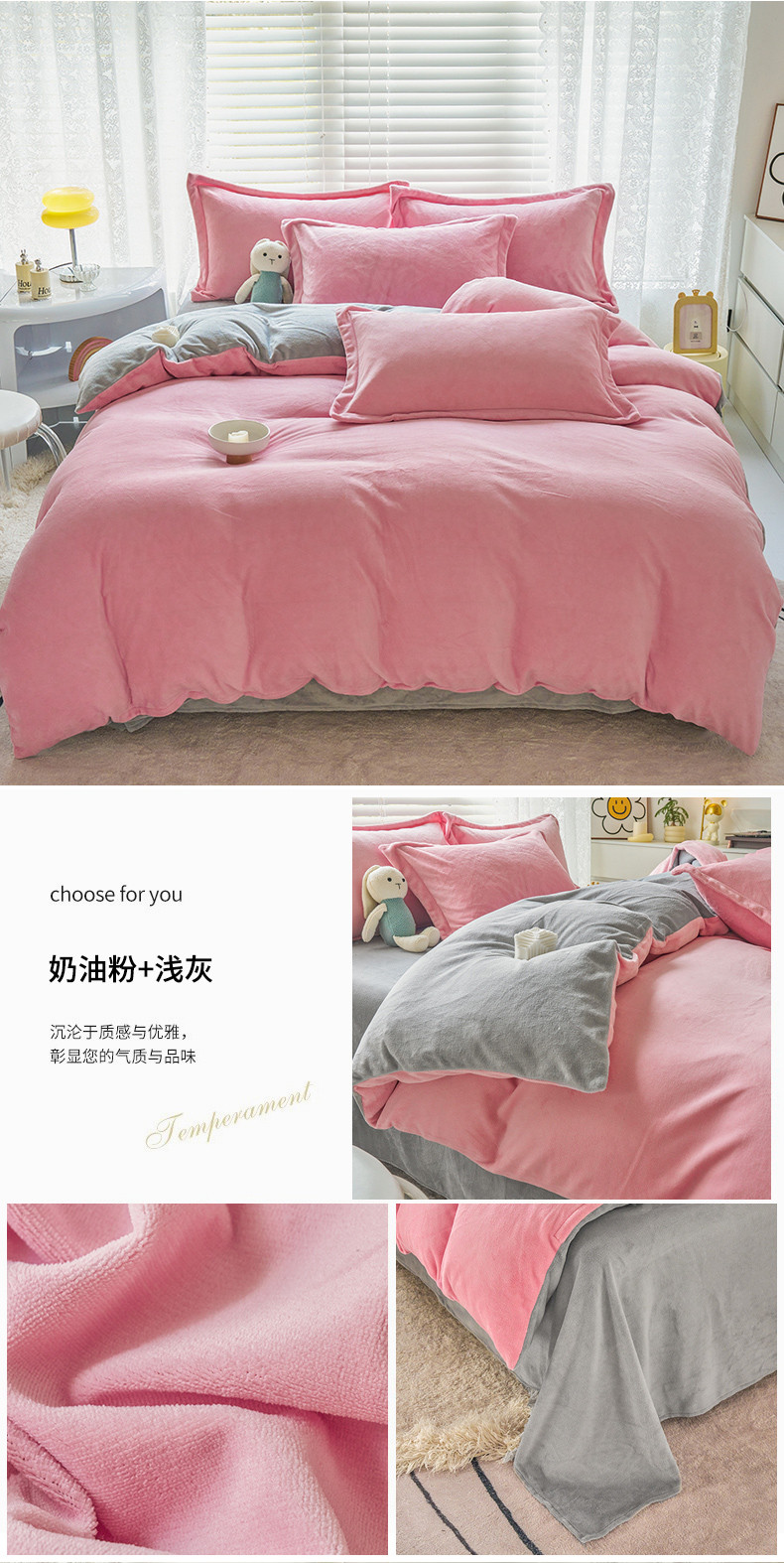 商品名称:慕晨 2023新款纯色牛奶绒双拼四件套 奶油粉+浅灰