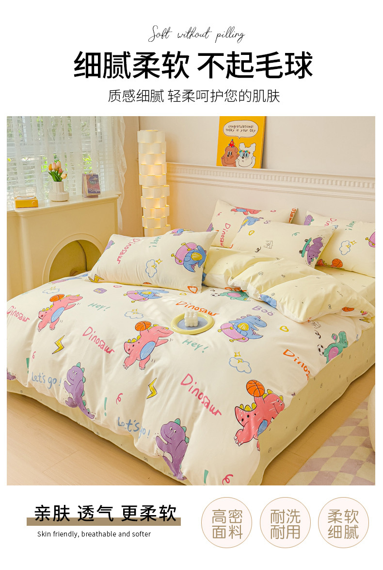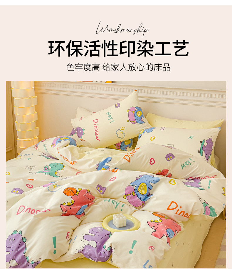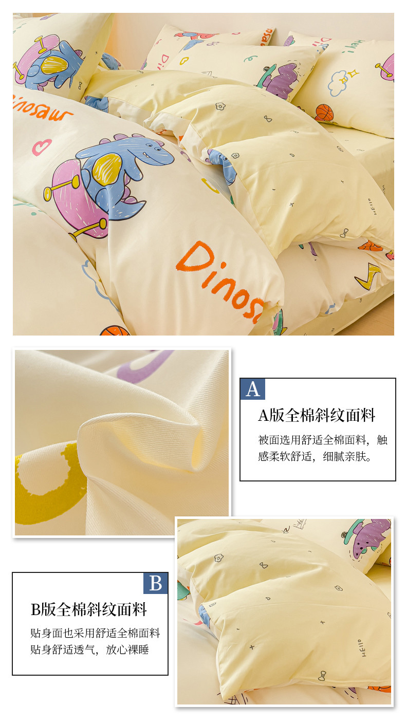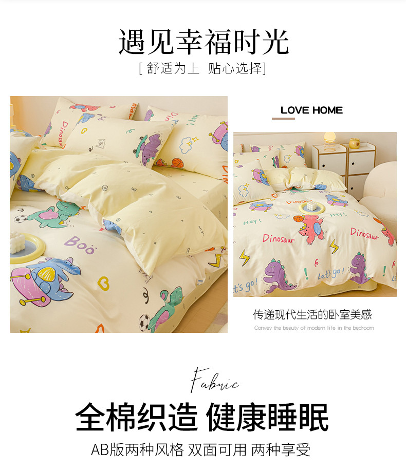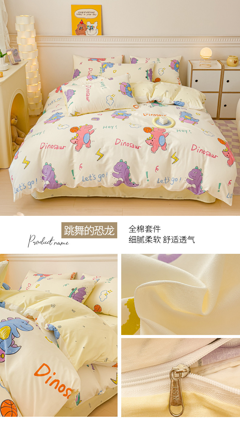 当前位置: 91家纺网 > 商品网购 > 床品套件 > 四件套 > 全棉普通四件套 > 金丝鸟家纺 2023新款全棉小清新四件套-第三批 跳舞的恐龙