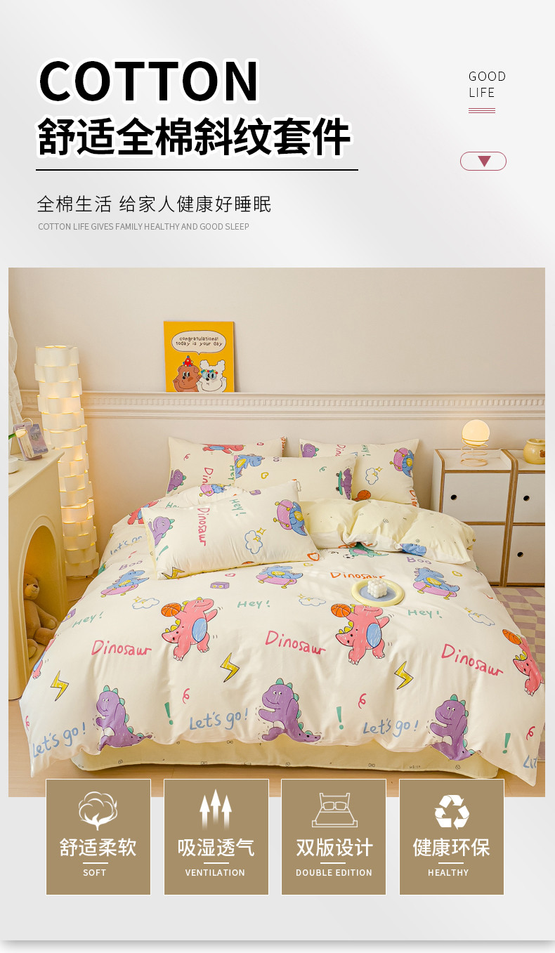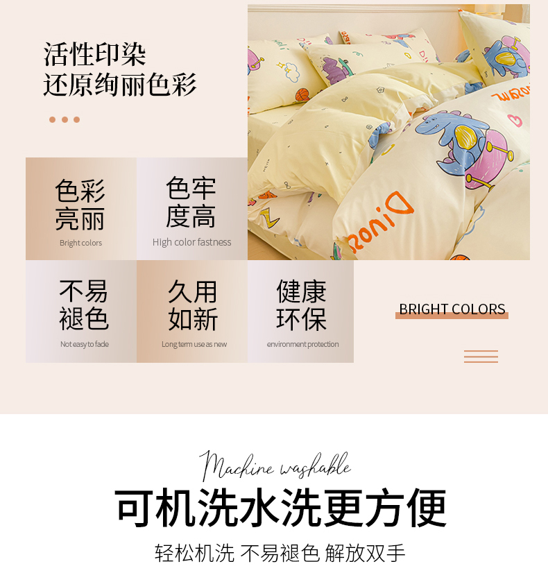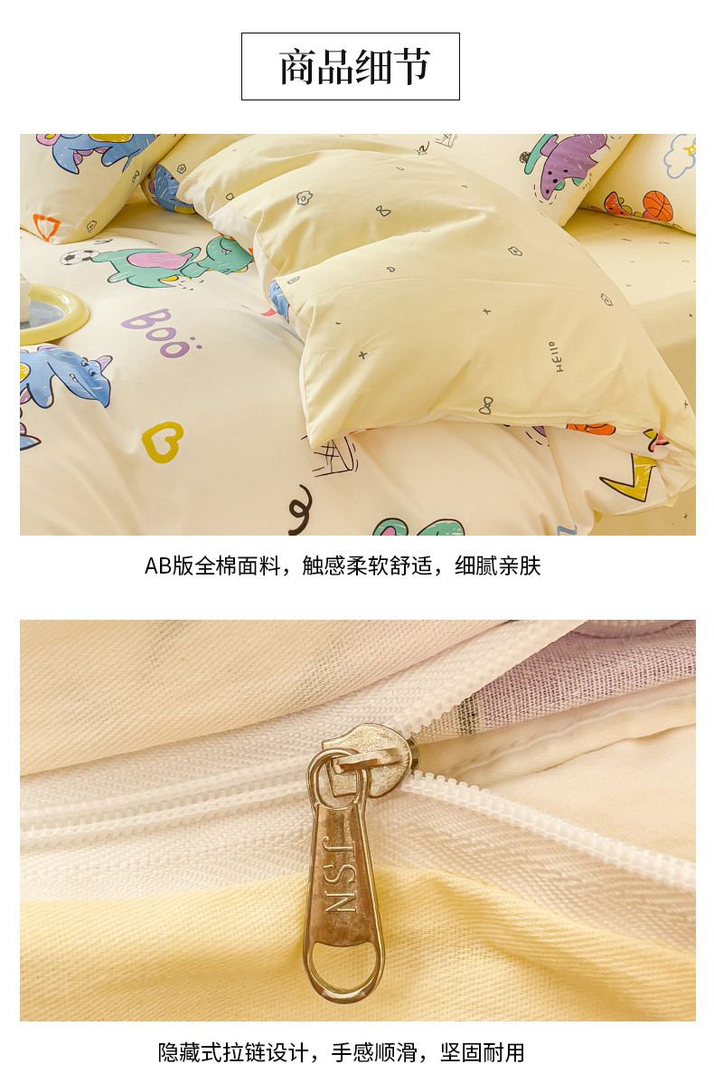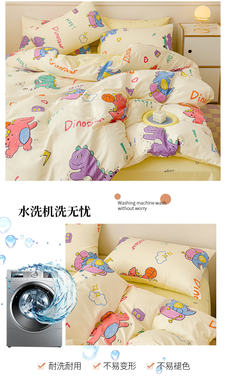 当前位置: 91家纺网 > 商品网购 > 床品套件 > 四件套 > 全棉普通四件套 > 金丝鸟家纺 2023新款全棉小清新四件套-第三批 跳舞的恐龙