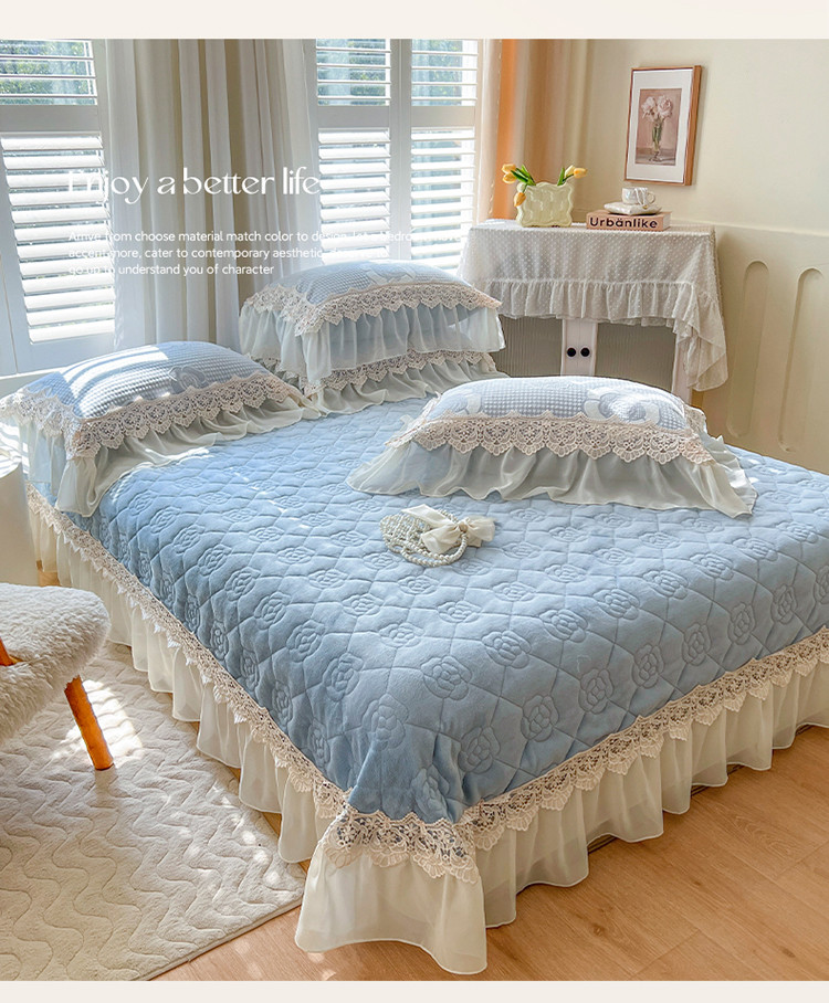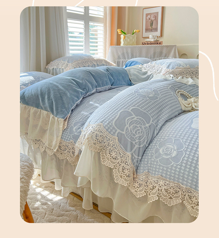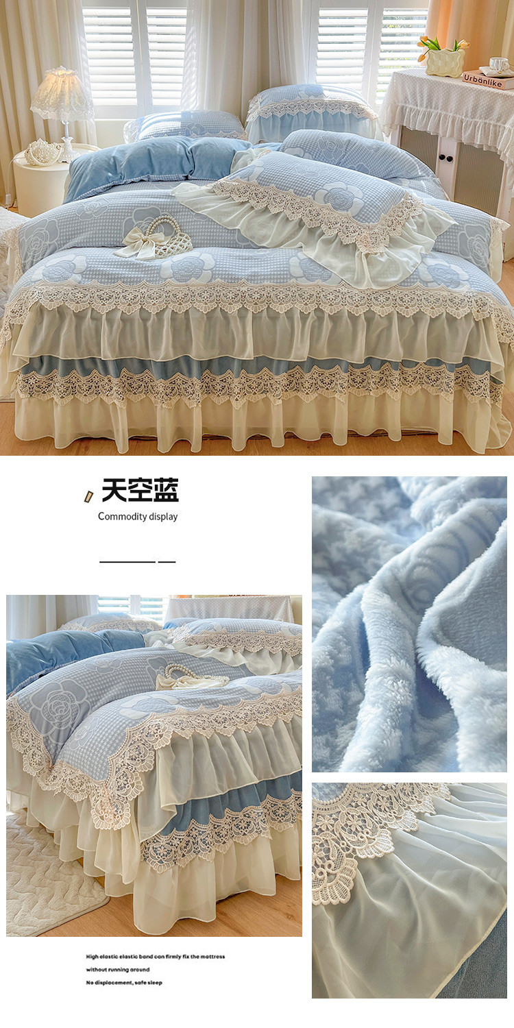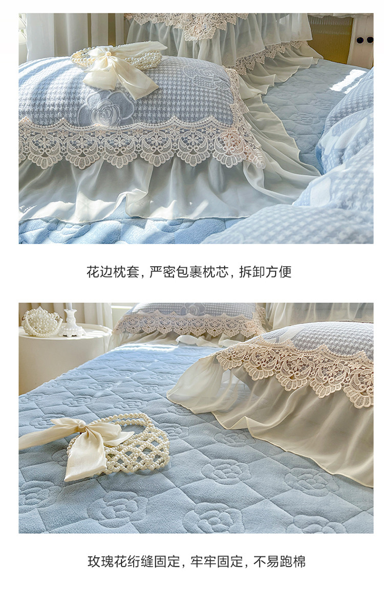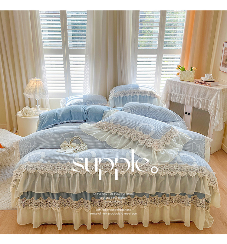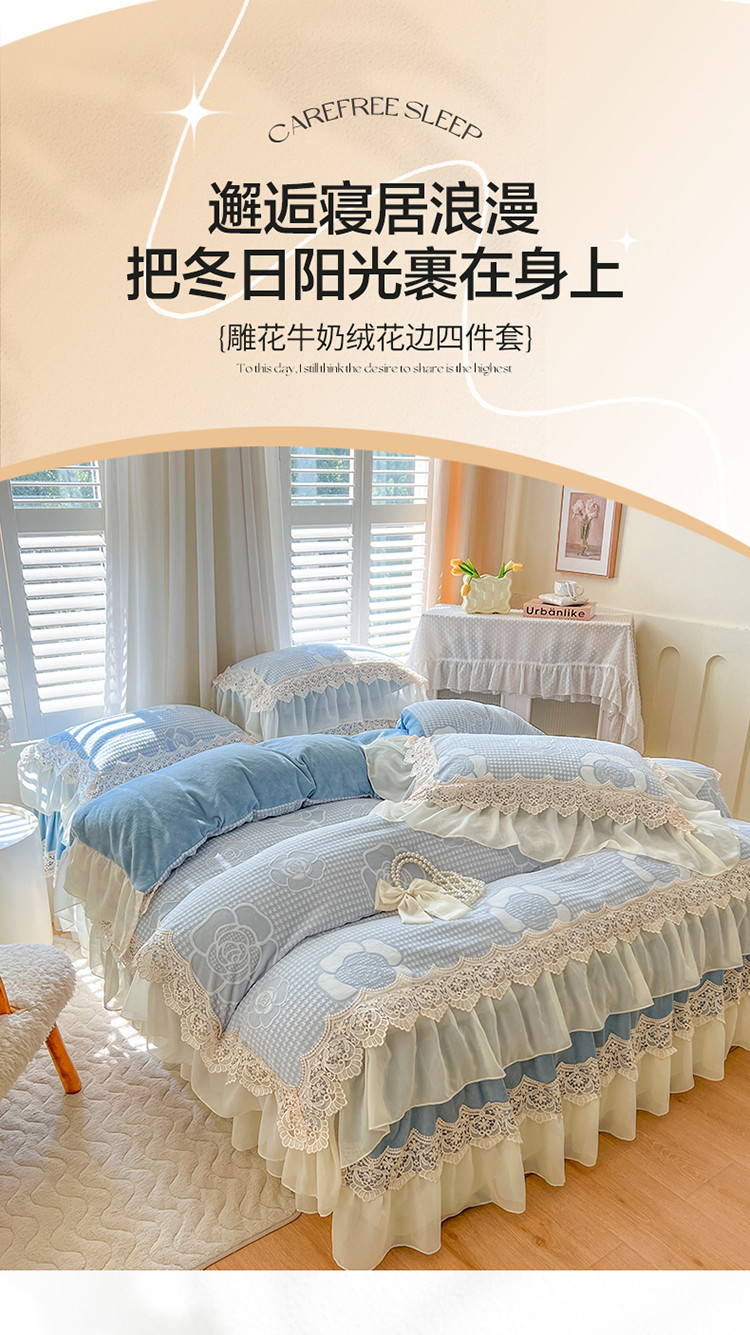 当前位置: 91家纺网 > 商品网购 > 床品套件 > 四件套 > 牛奶绒四件套 > 网红馆 2025新款花间浪漫 牛奶雕花绒四件套 天空蓝