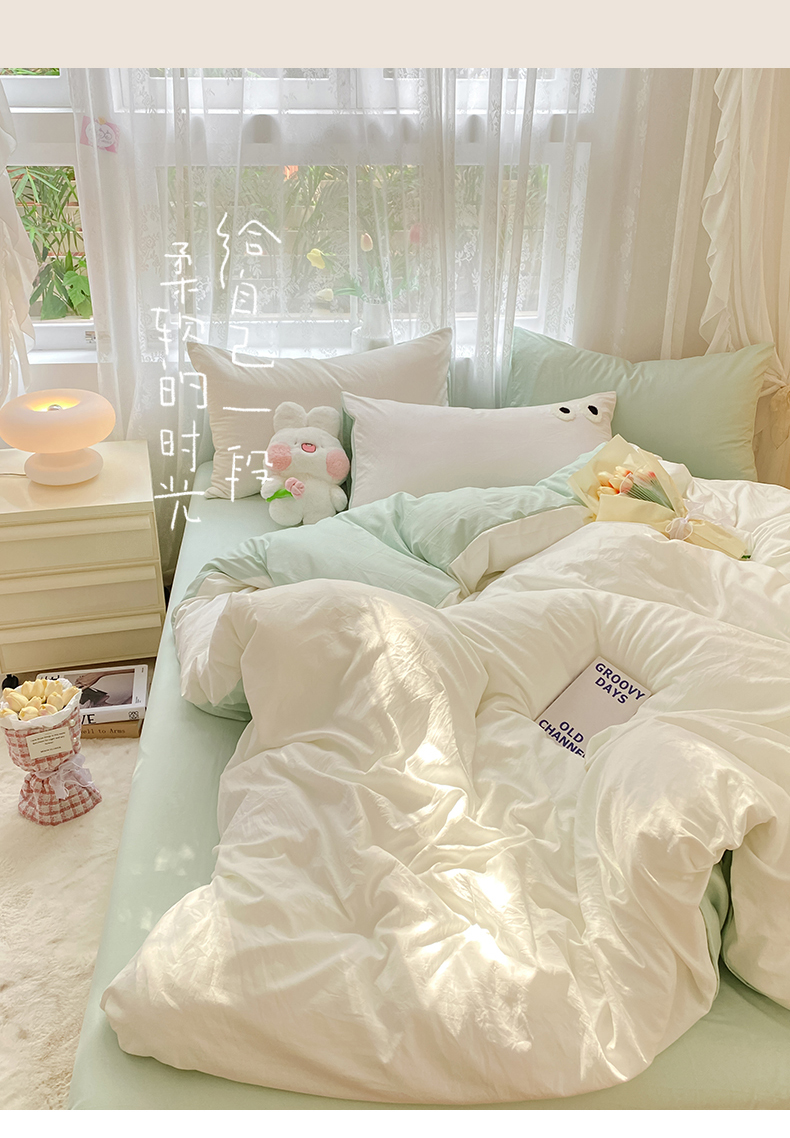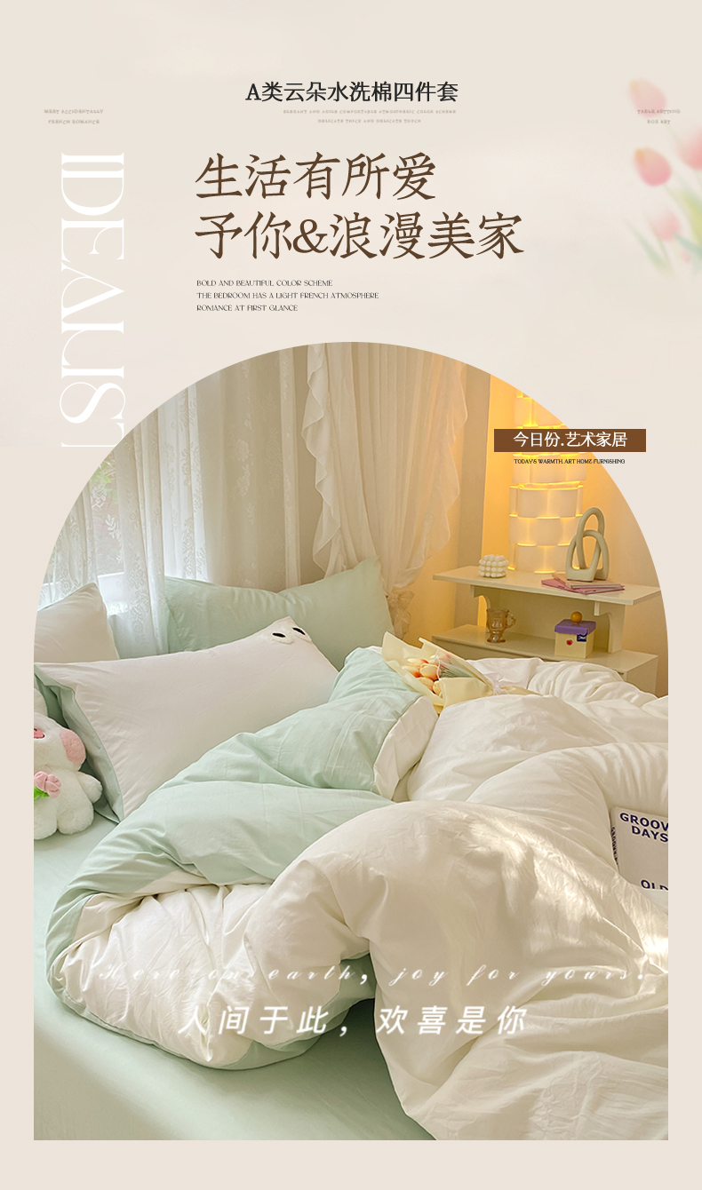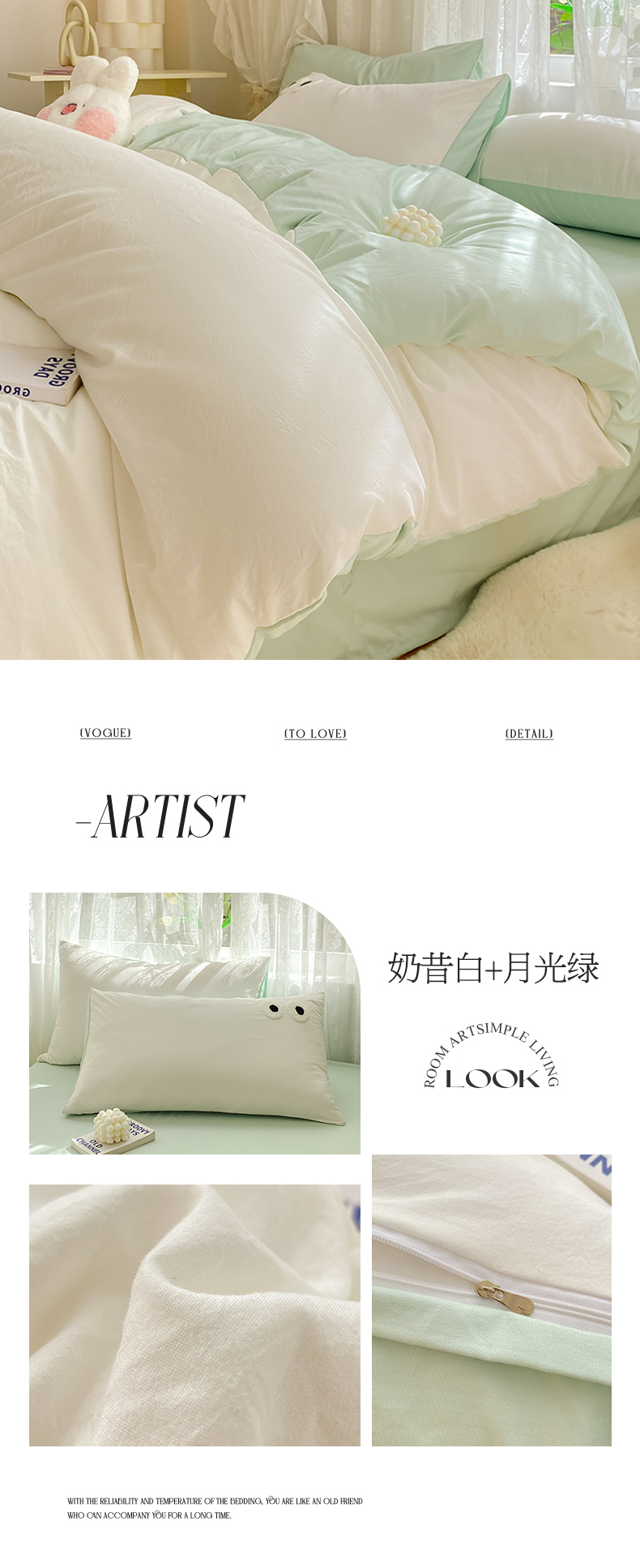 当前位置: 91家纺网 > 商品网购 > 床品套件 > 四件套 > 全棉普通四件套 > 凯洛奇 2023新款1超柔云朵棉大眼系列四件套 奶昔白+月光绿