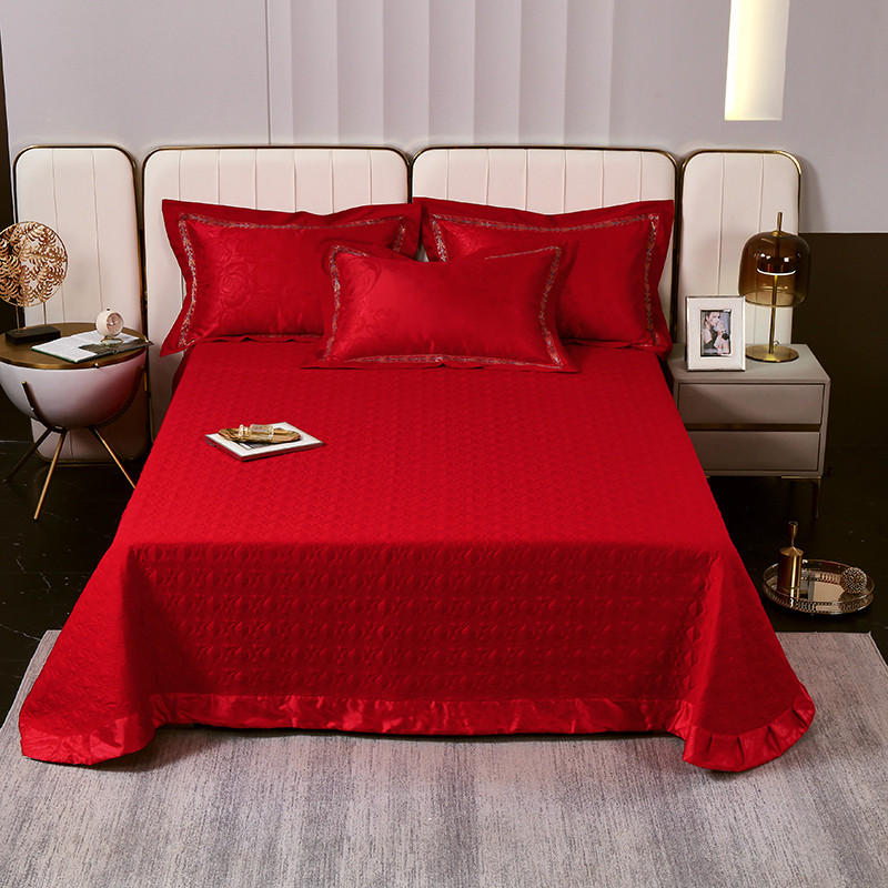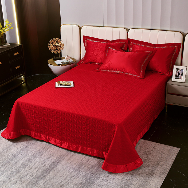 小时代家纺 2023新款纯棉贡缎提花夹棉单床盖挚爱倾城-大红