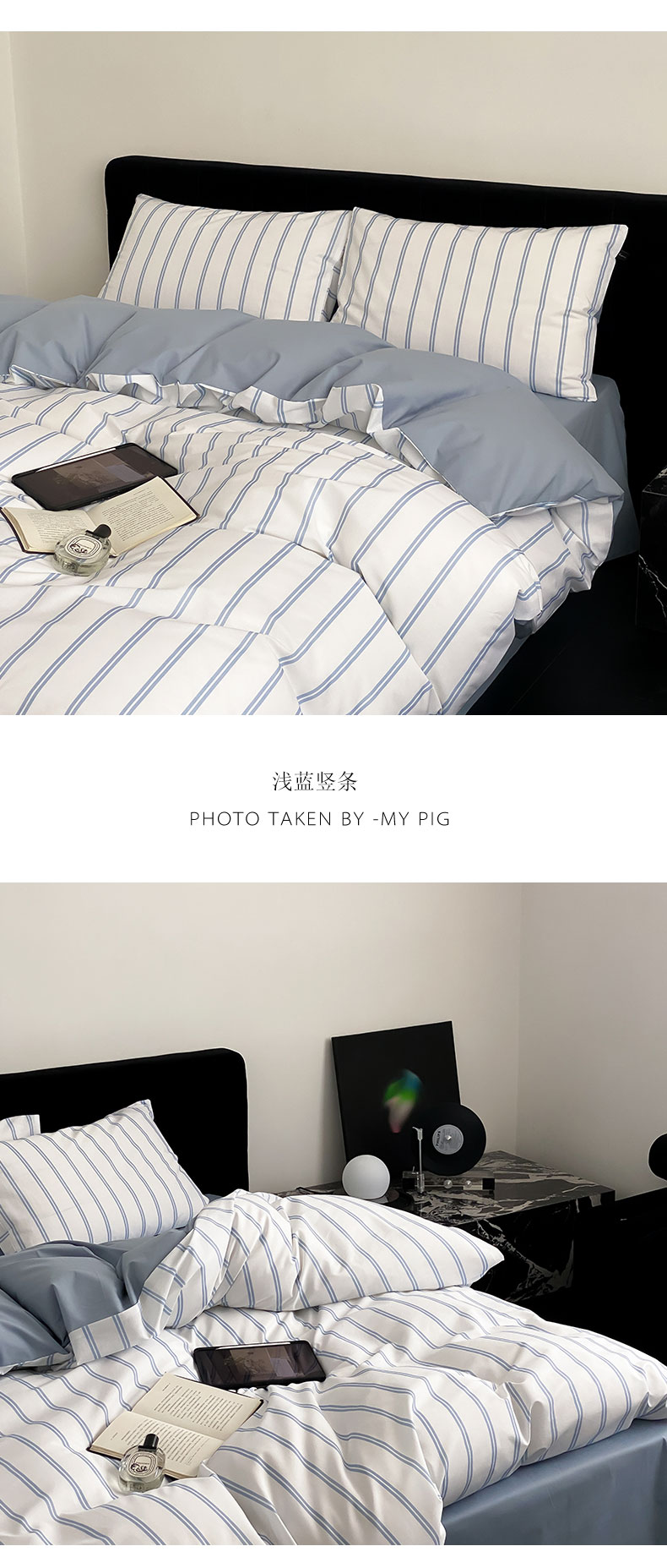 北欧风ins纯棉水洗棉床四件套全棉简约被套床单上三件套床笠,白色+藏青,藏青+浅蓝,鹅黄+螺旋藻绿,鹅黄+牛油果,螺旋藻绿+鹅黄,千夏紫+水貂灰,千夏紫+薇薇紫,薇薇紫+浅灰,浅蓝+鹅黄,浅蓝+白色,浅蓝+藏青