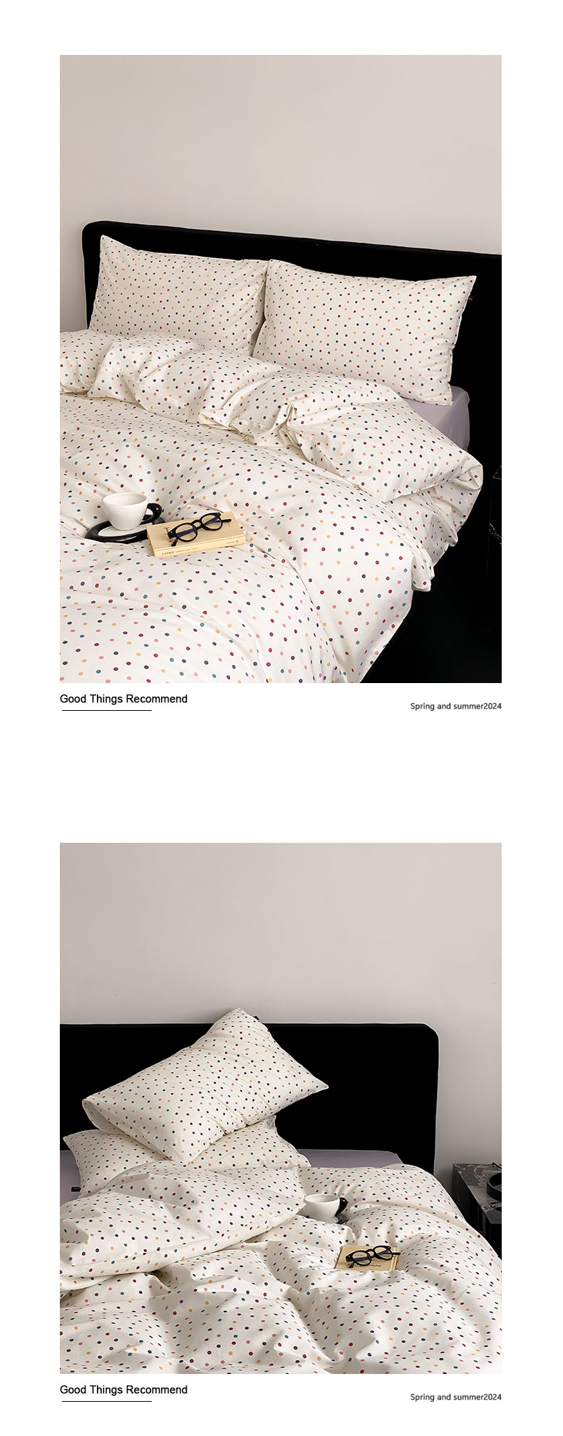 Mr.pig猪先生水洗棉 2023新款A类全棉印花竖条纹四件套 五彩波点