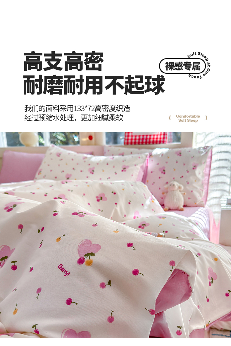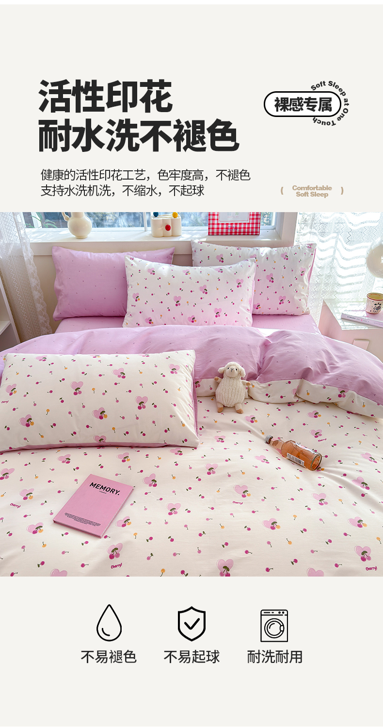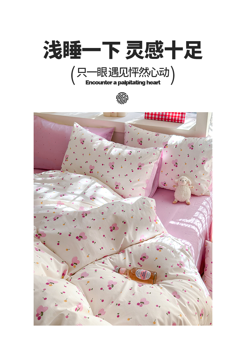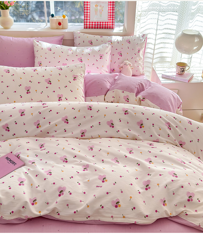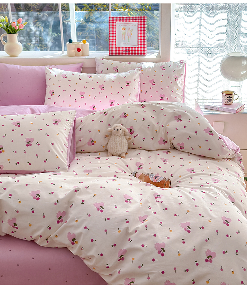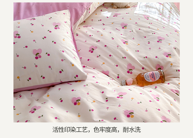 商品名称:清雅福 2024新款全棉13372小清新活性印花四件套 爱心樱桃