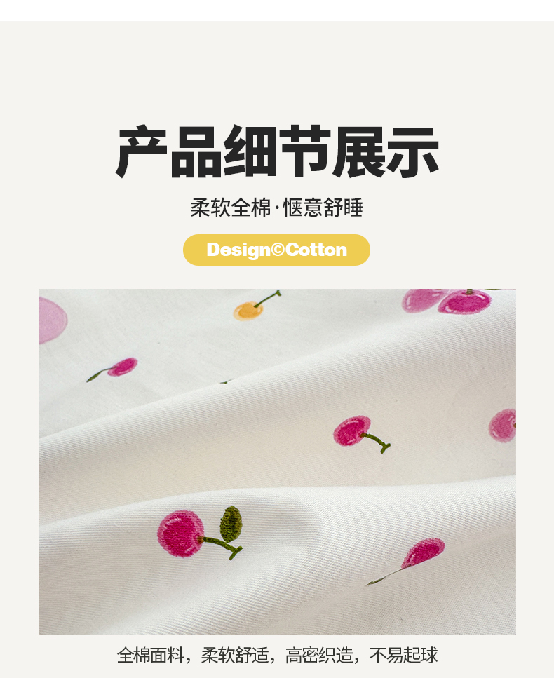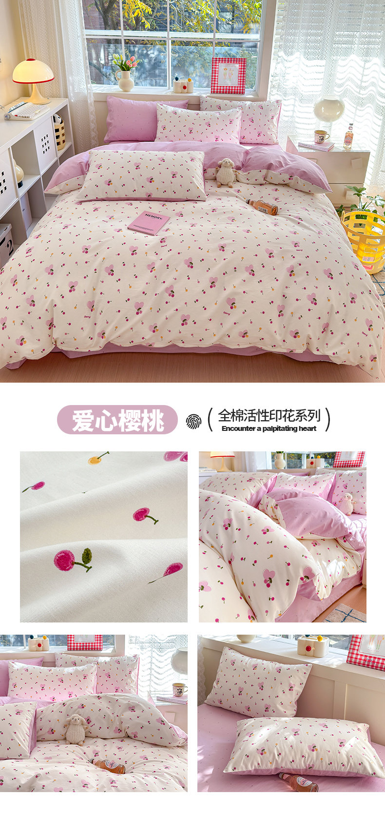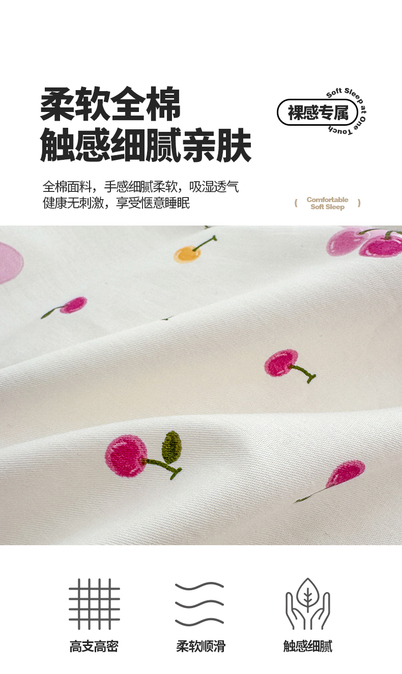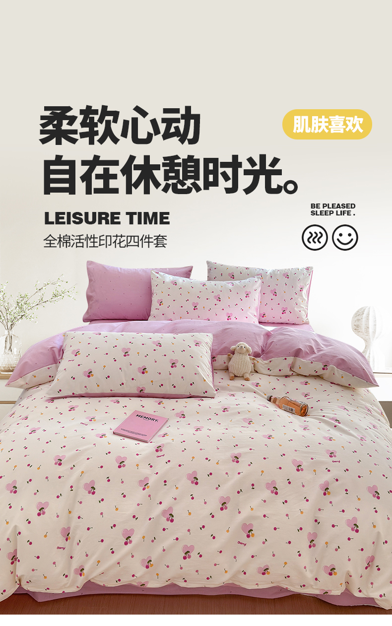 商品名称:清雅福 2024新款全棉13372小清新活性印花四件套 爱心樱桃