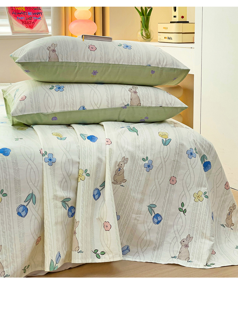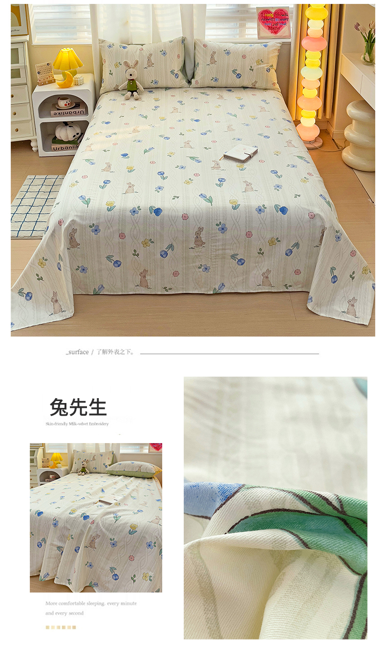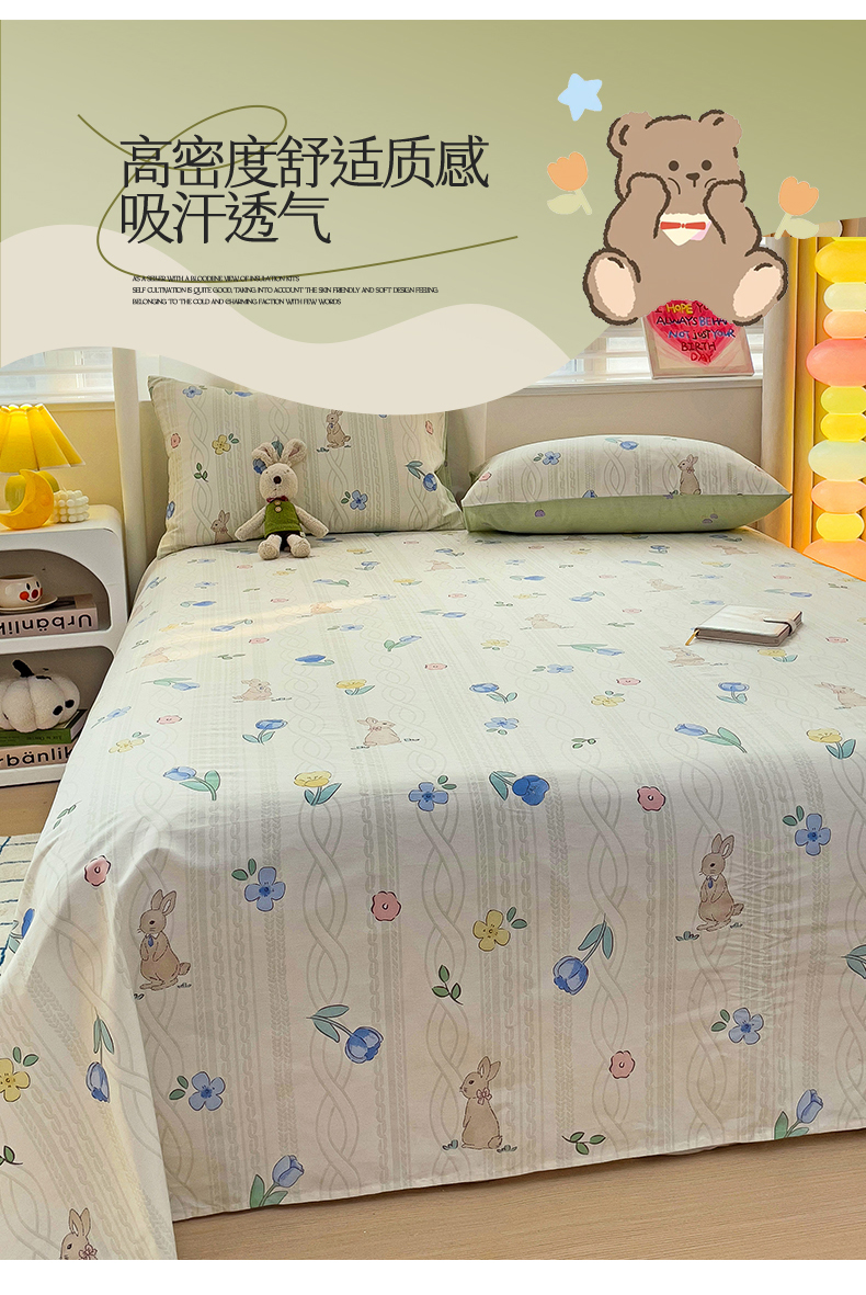 • 91家纺网 家纺一手货源 找家纺 名兮家居 2024新款小清新全棉单品床单 兔先生