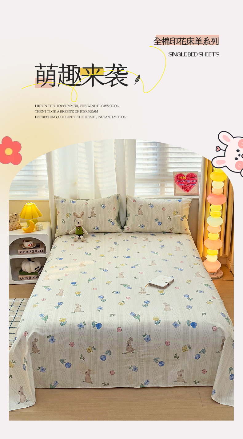 名兮家居 2024新款小清新全棉单品床单 兔先生
