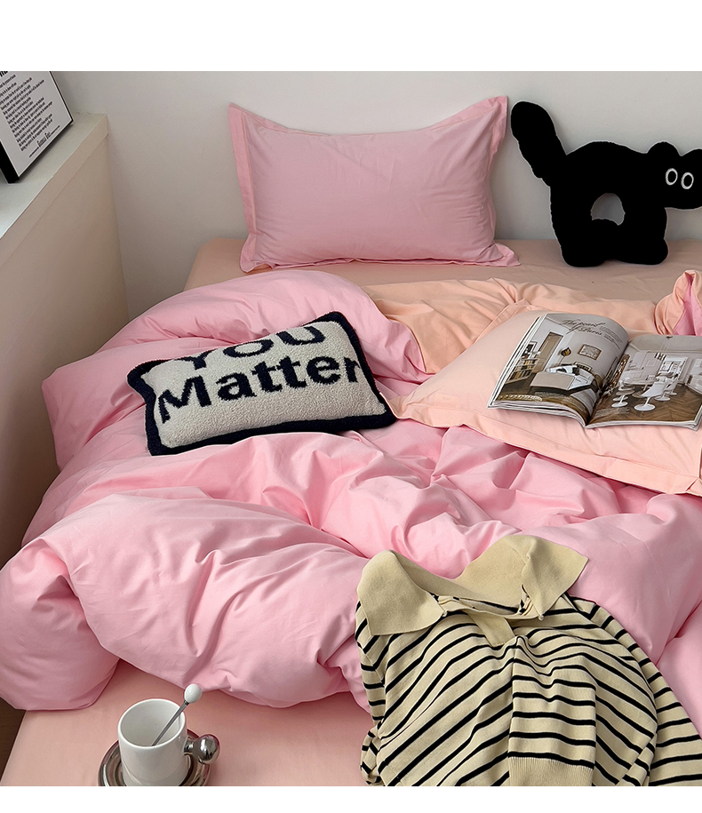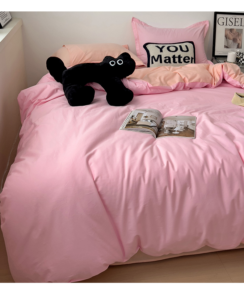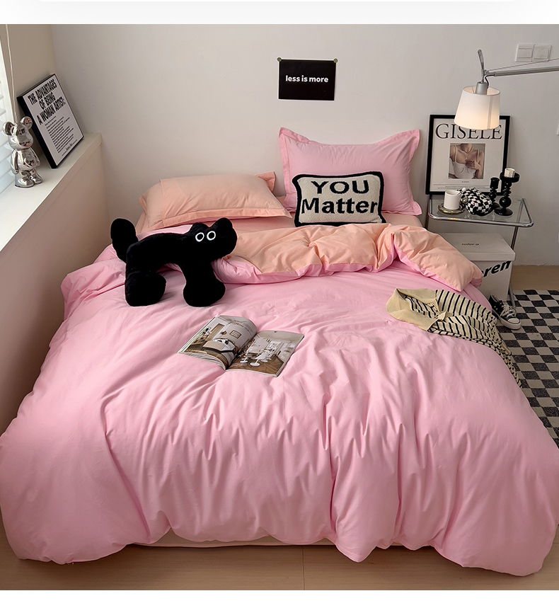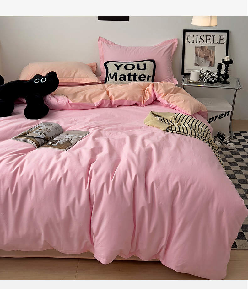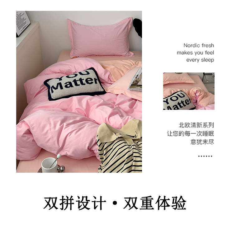 当前位置: 91家纺网 > 商品网购 > 床品套件 > 四件套 > 全棉普通四件套 > 恩泽家纺 2024新款全棉13372纯色双拼系列四件套 粉色+玉色