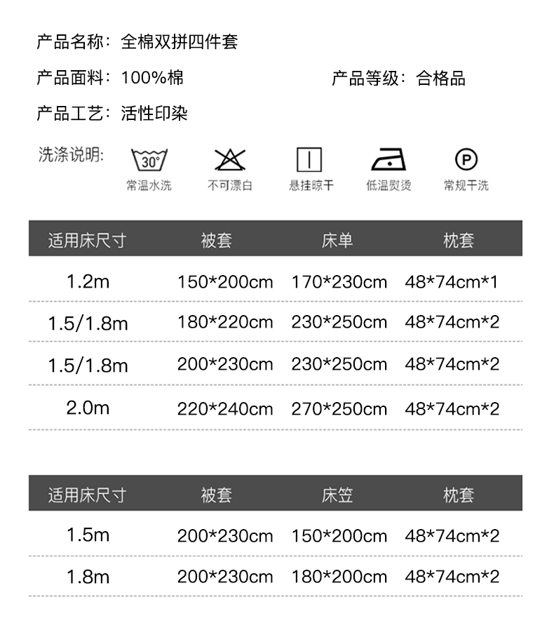 1.8床笠四件套(被套200x230) | ¥102.00 |
