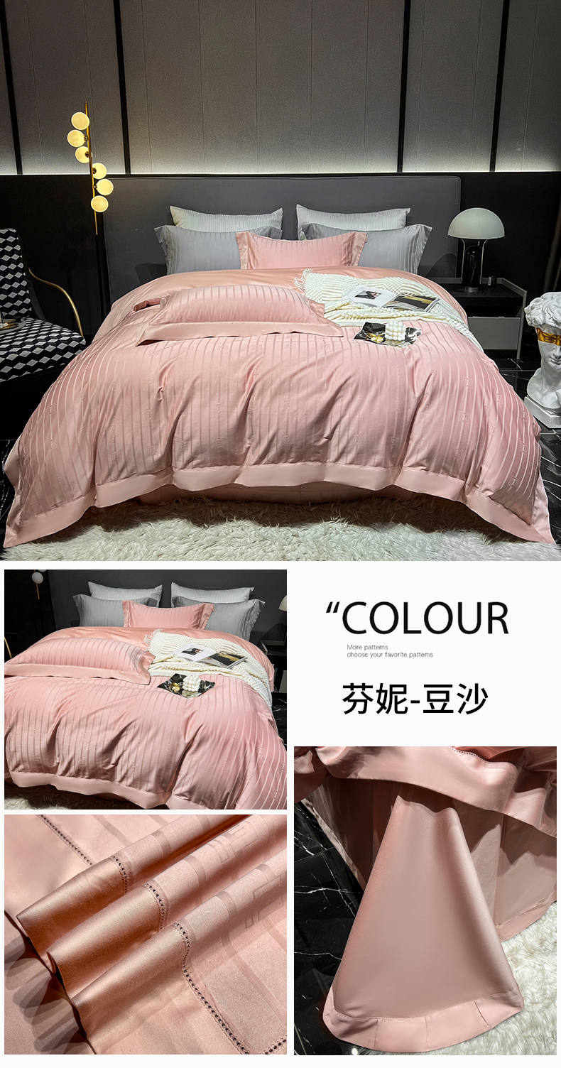 (总)淼铭家纺 2025新款莱赛尔夏被四件套-黛莉丝系列,黛丽丝-粉,黛莉丝-金,黛莉丝-青,黛莉丝-紫