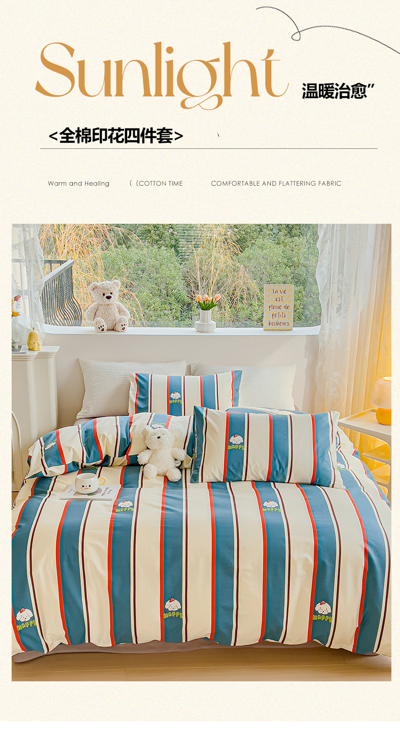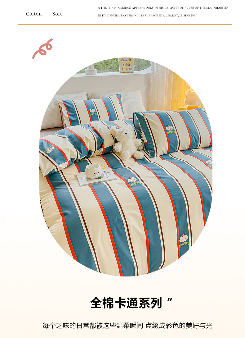 当前位置: 91家纺网 > 商品网购 > 床品套件 > 四件套 > 全棉普通四件套 > 感遇家纺 2024春夏新品全棉卡通印花四件套-第一批 慢时光
